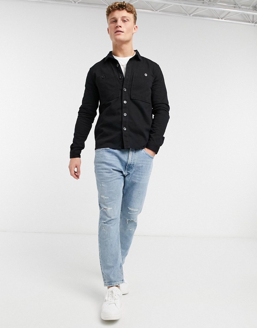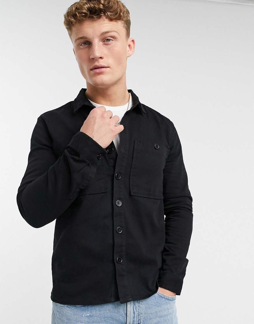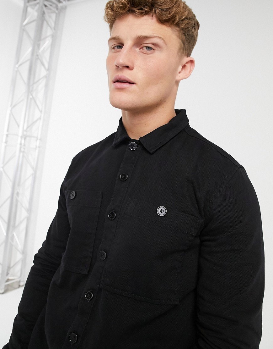 New Look męska czarna koszula z diagonalu z kieszeniami M