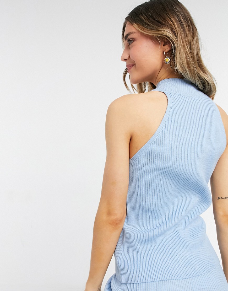 New Look niebieski dzianinowy top z półgolfem bez rękawów M