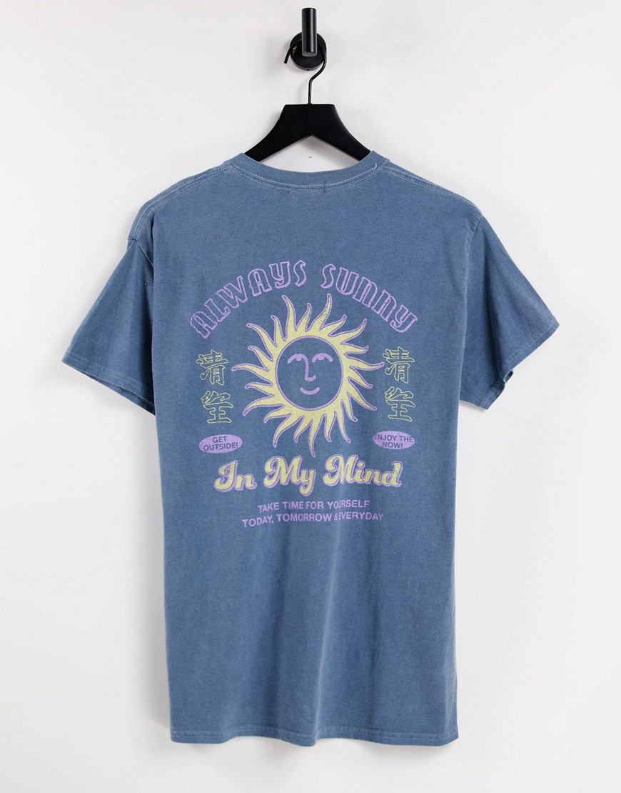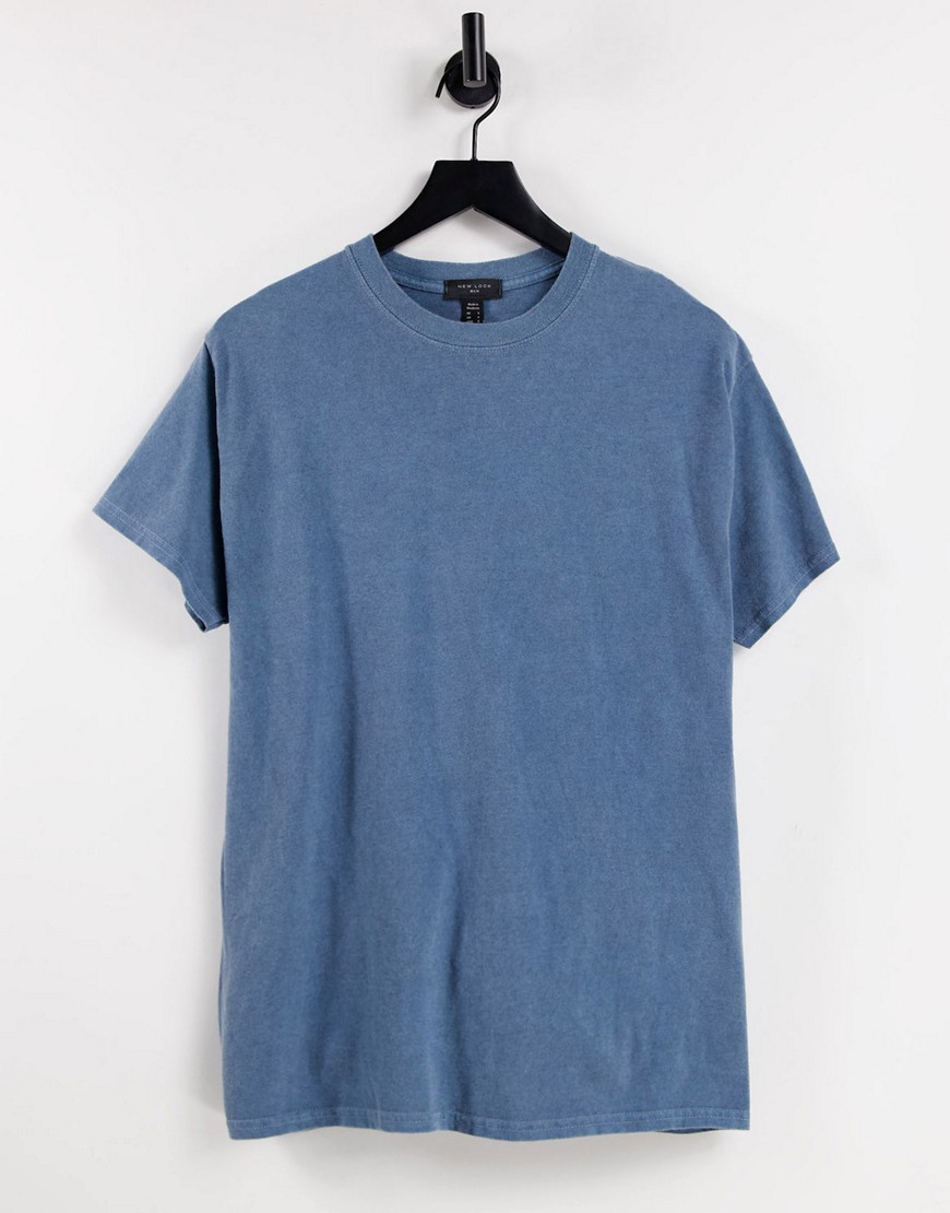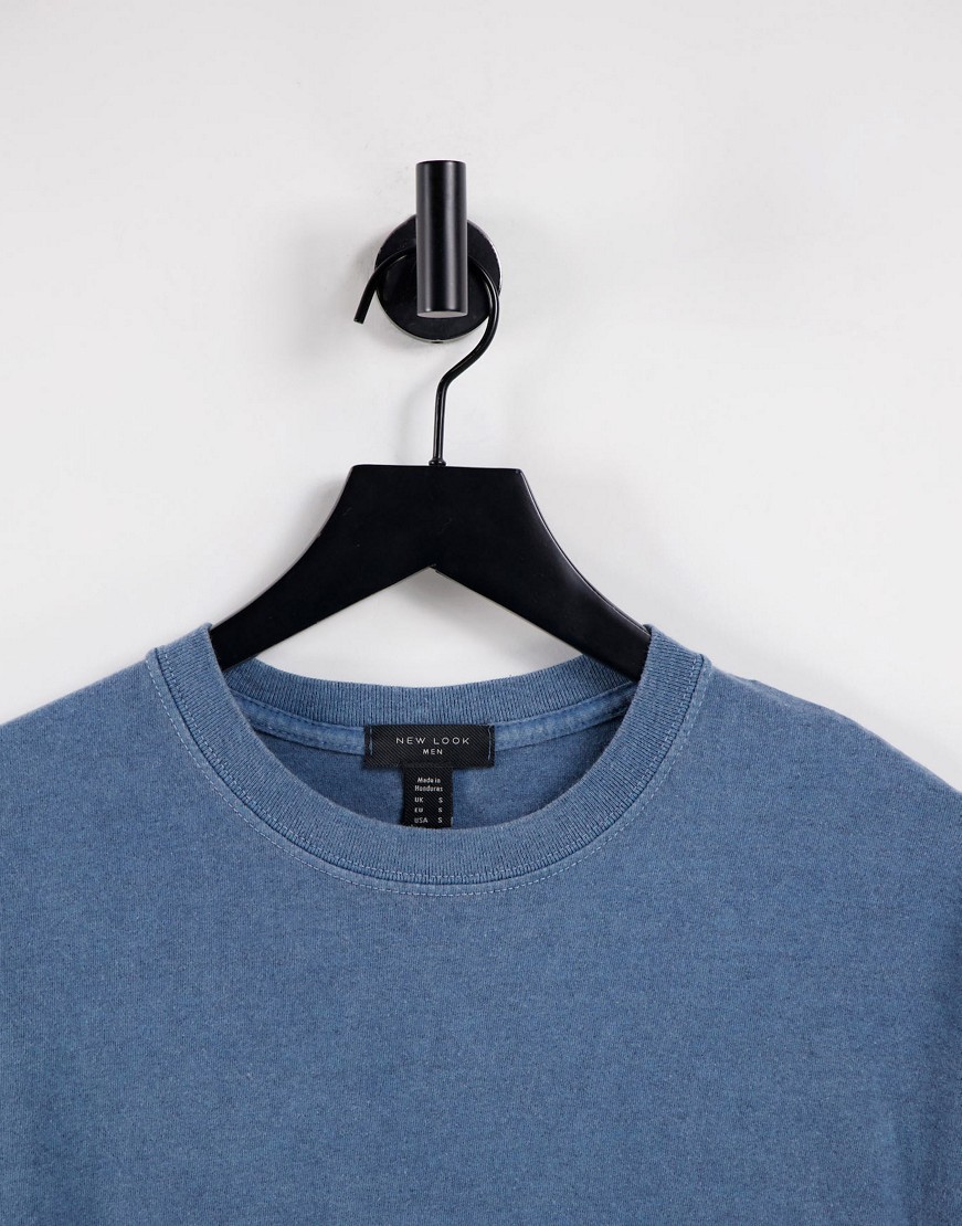 New Look niebieski T-shirt z efektem sprania i nadrukiem M