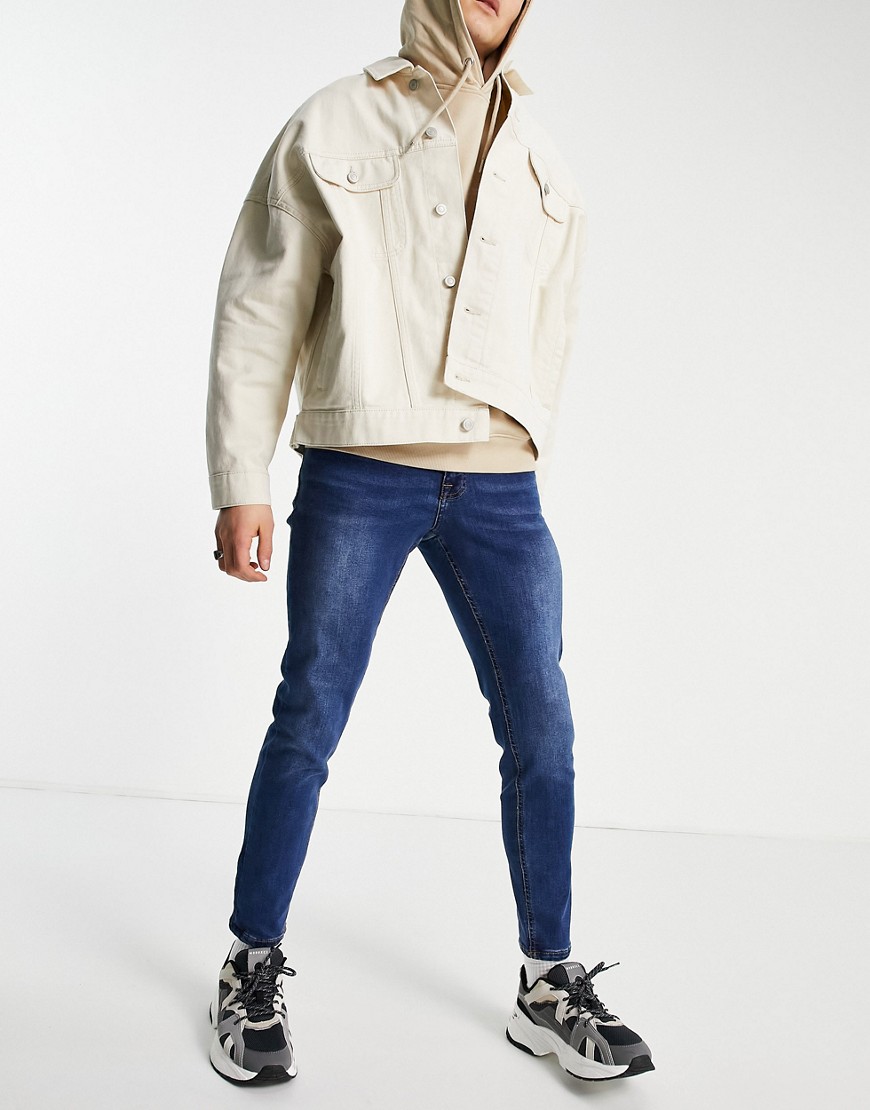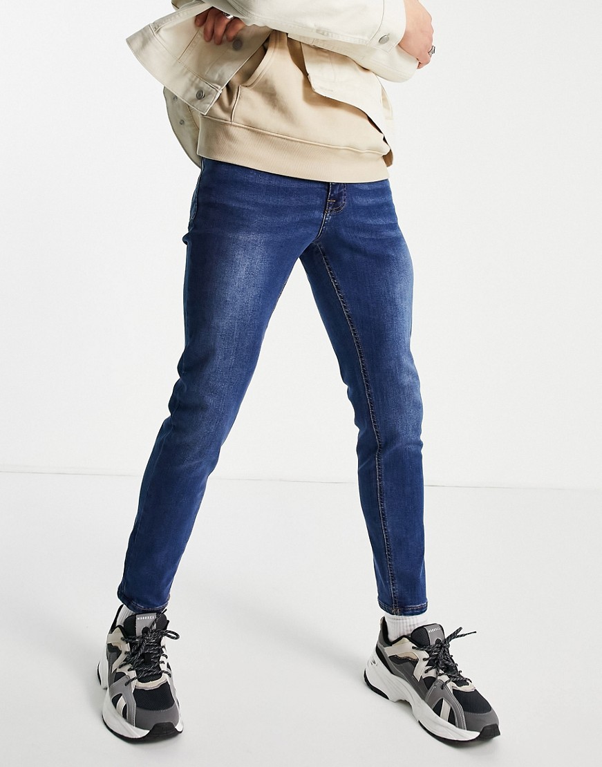 New Look Niebieskie jeansy o obcisłym kroju defekt W30 L30