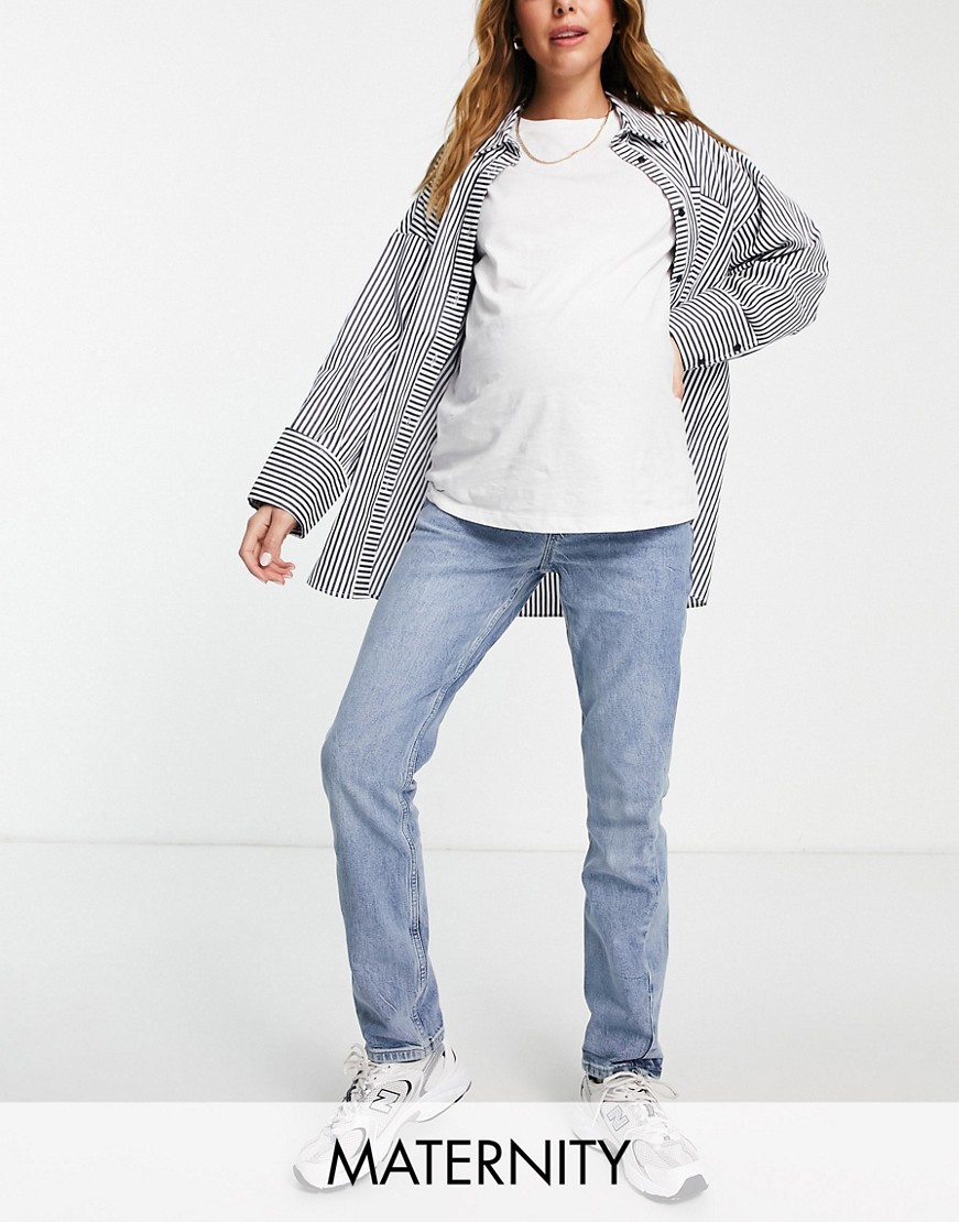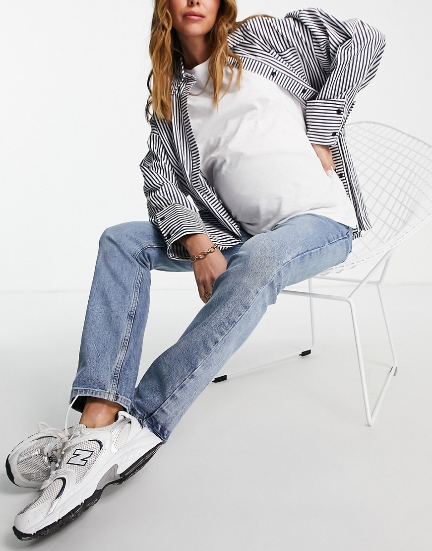 New Look niebieskie mom jeans ciążowe efekt sprania 40
