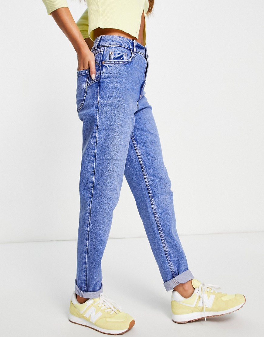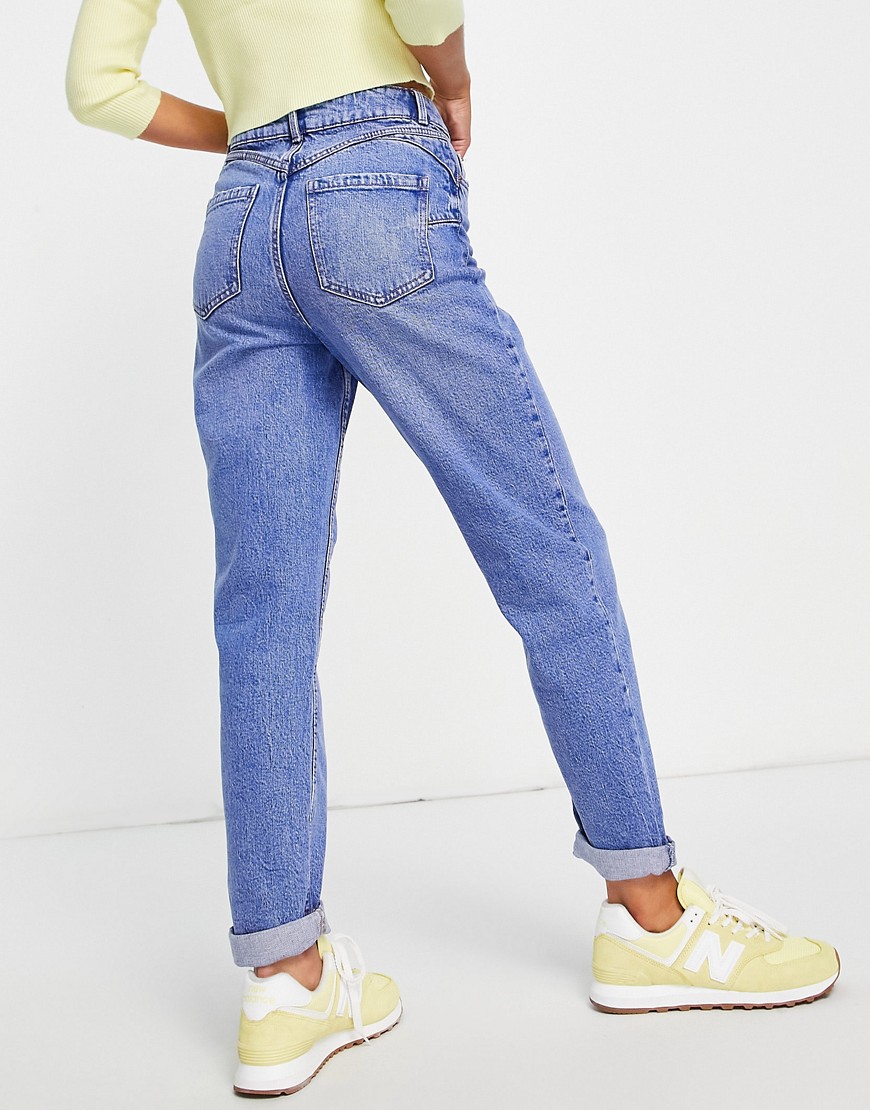 New Look Niebieskie mom jeans o kroju podkreślającym talię defekt 38