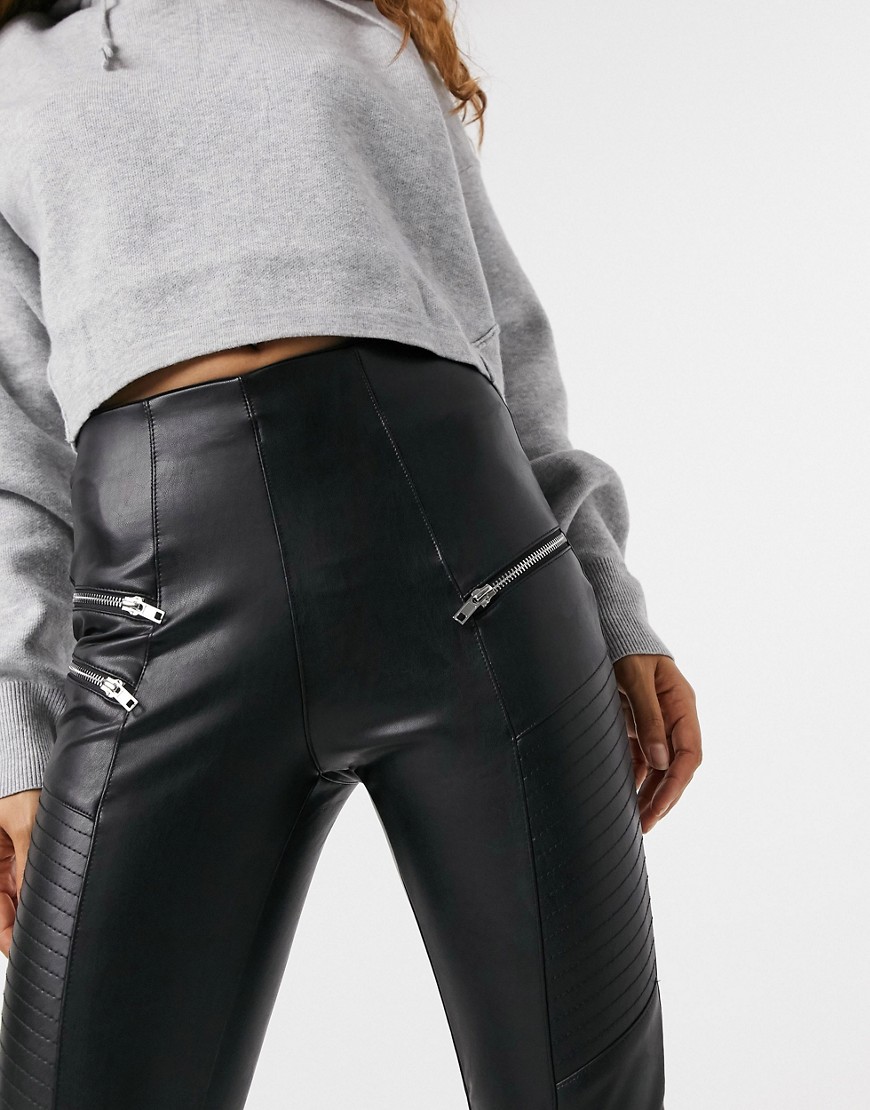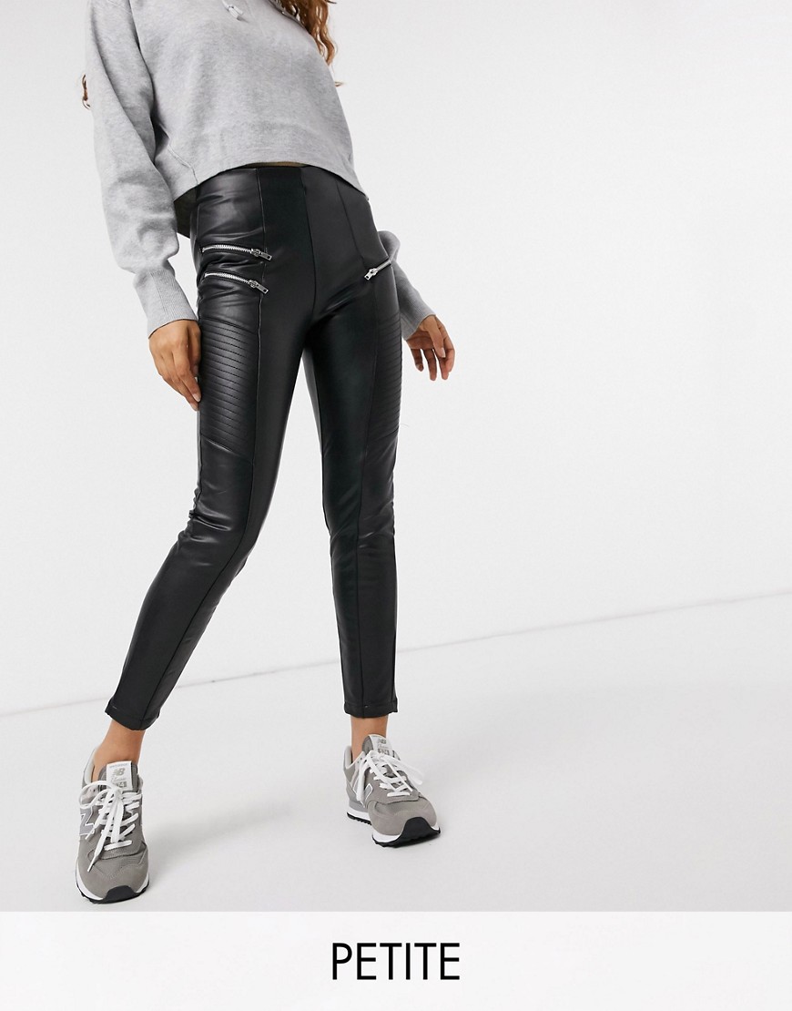 New Look Petite – Czarne legginsy typu biker z imitacji skóry defekt 38