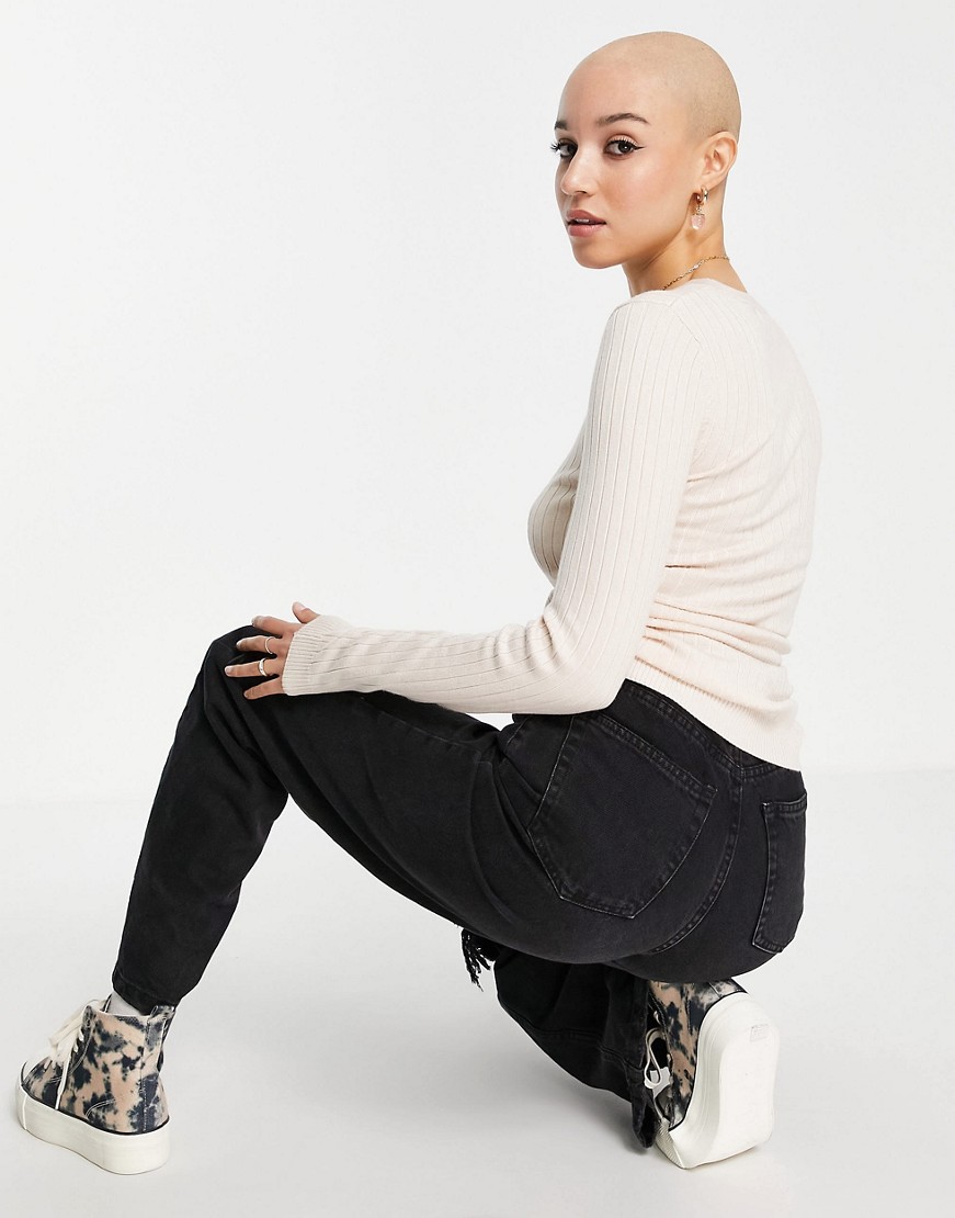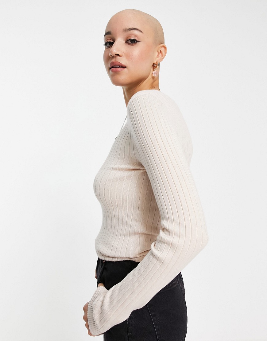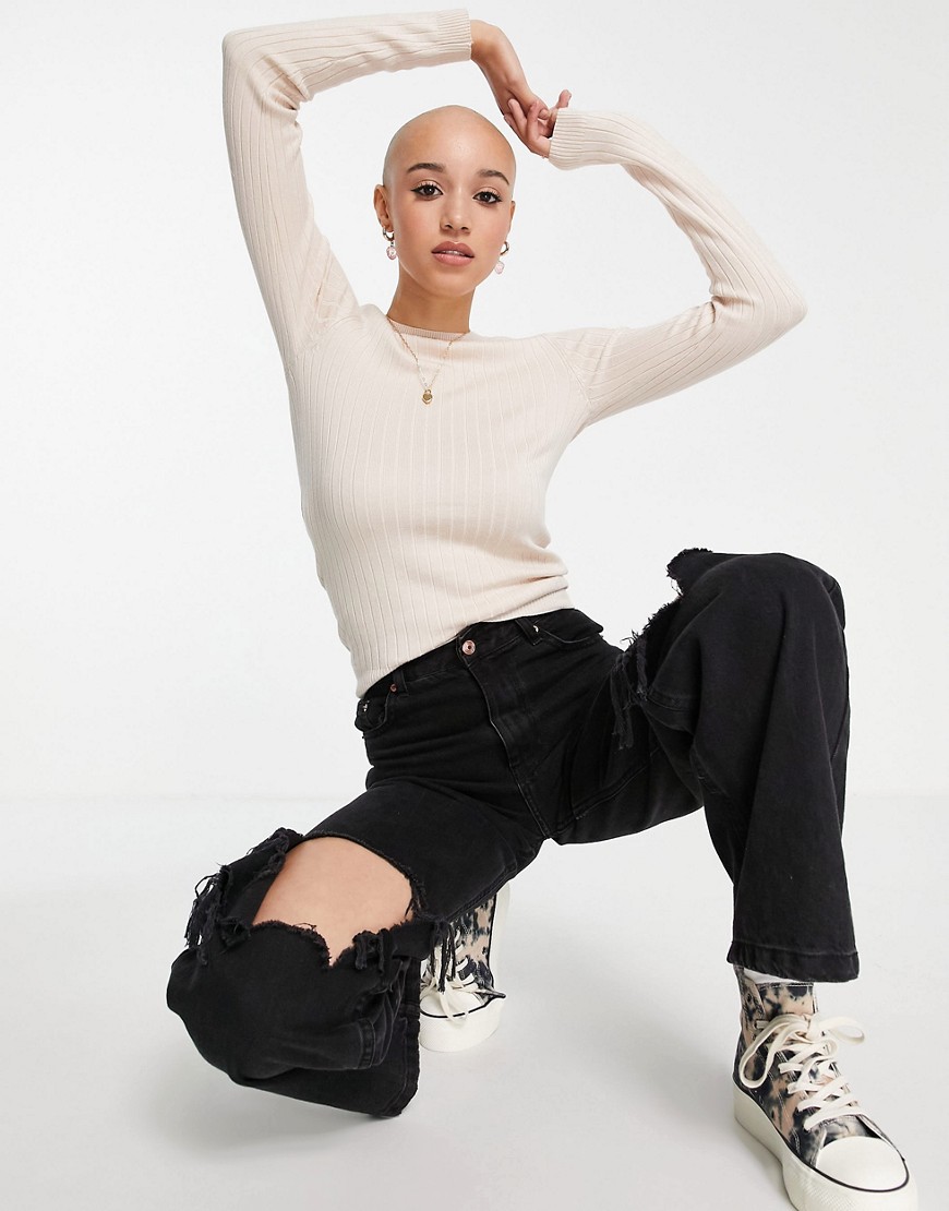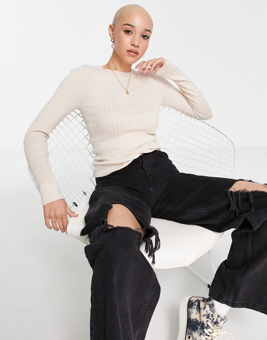 New Look prążkowany sweter z dzianiny ecru 38