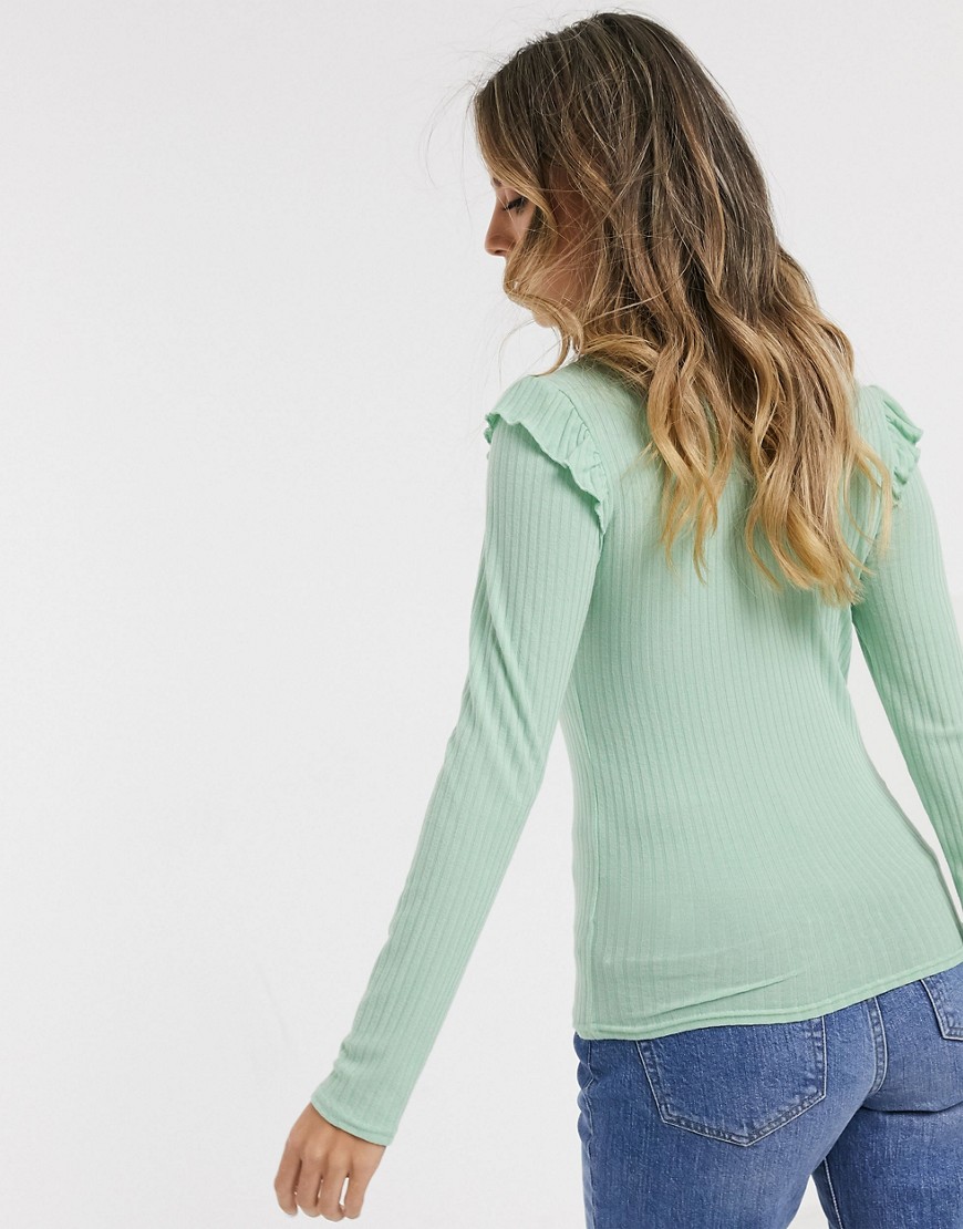 New Look szałwiowa bluzka z długim rękawem z falbanką 38
