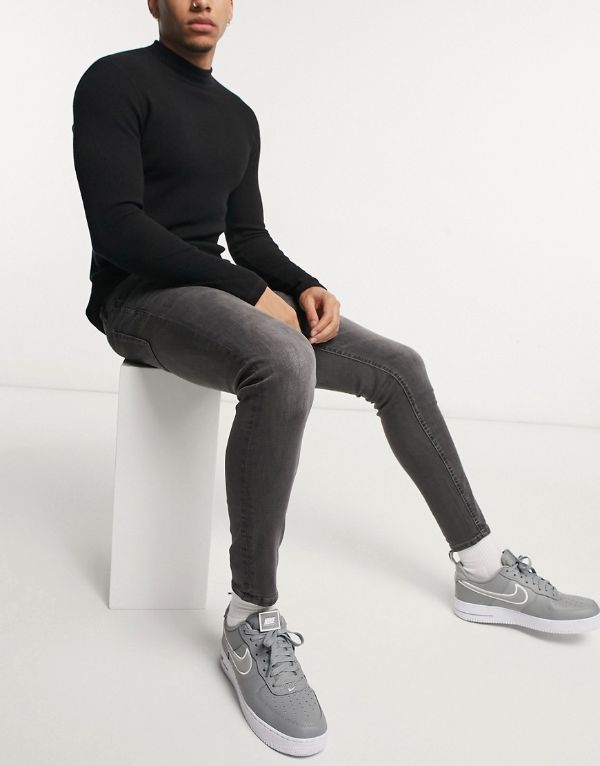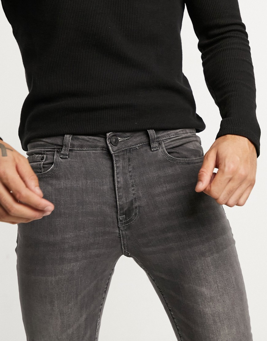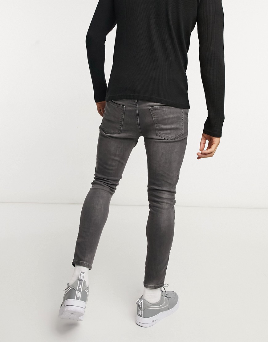 New Look szare męskie jeansy skinny efekt sprania W32 L34
