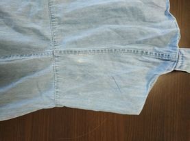 - defekt odbarwienie materiału z przodu po lewej stronie