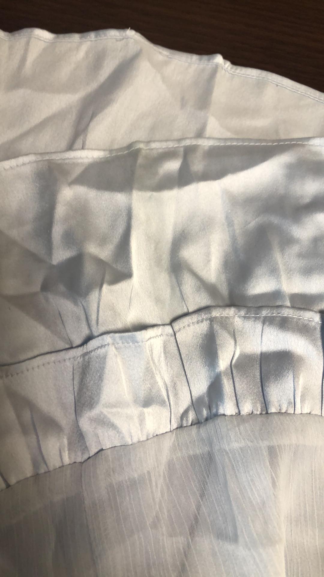 - Defekt: zabrudzenie materiału przód dół falbanka