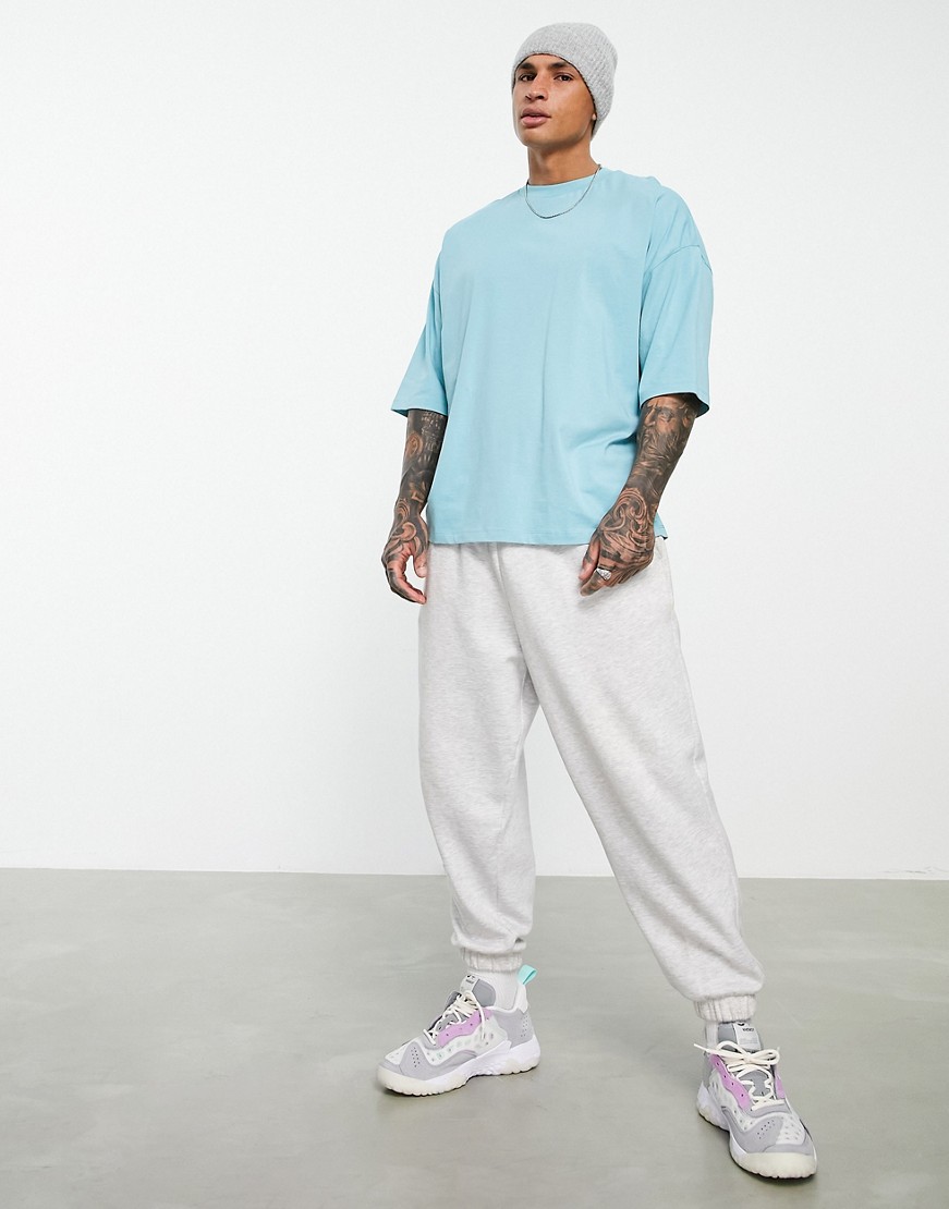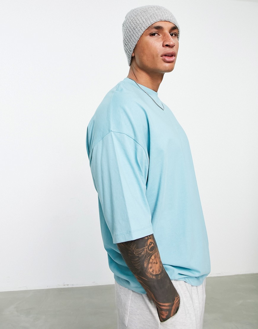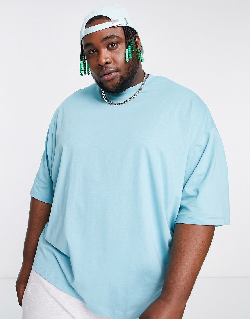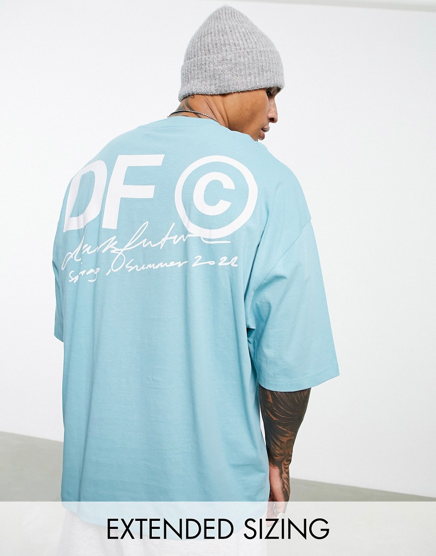 Niebieski T-shirt oversize z nadrukiem logo na plecach defekt 4XL