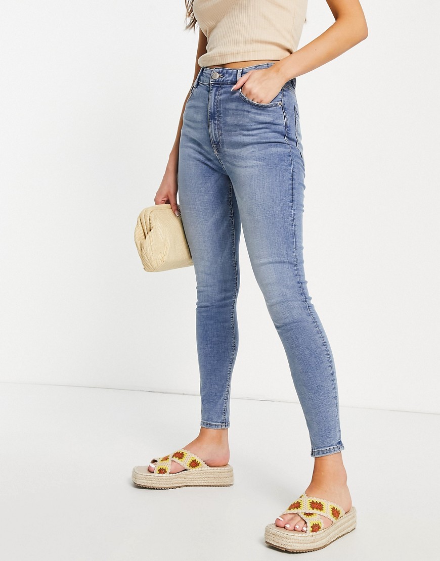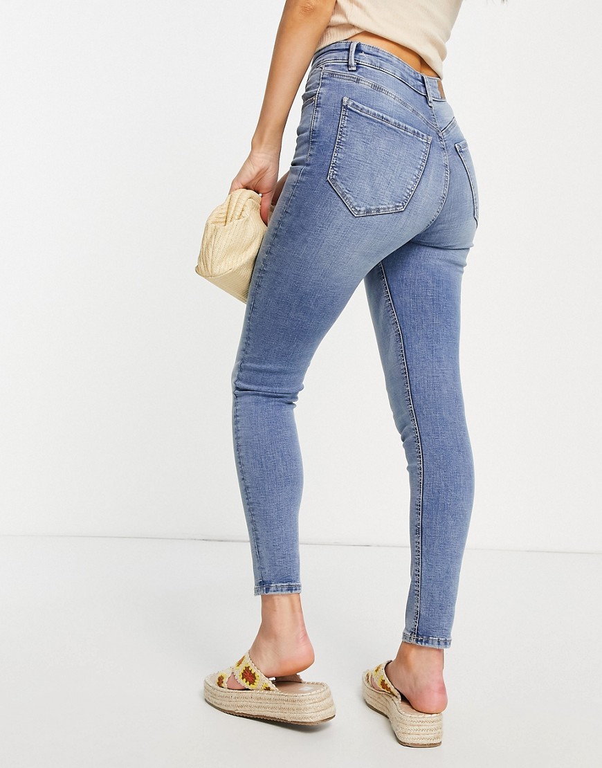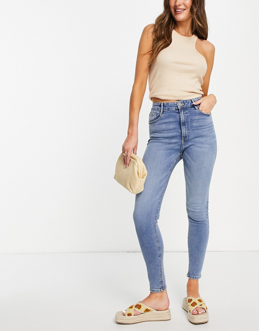 Niebieskie dopasowane modelujące jeansy z podwyższonym stanem defekt 42