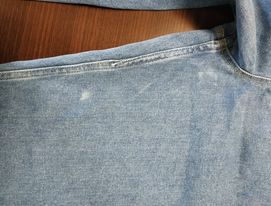 • defekt odbarwienie materiału z przodu na lewej nogawce