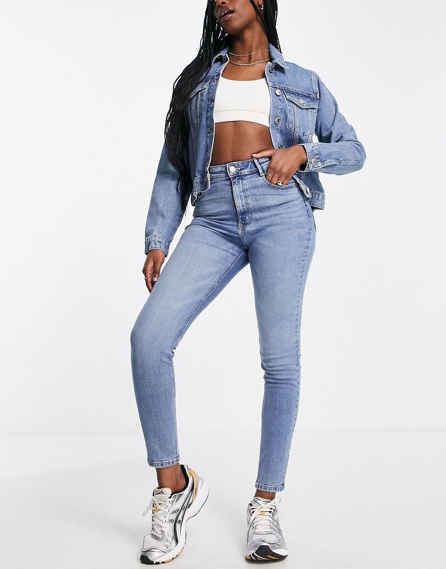 Niebieskie jeansy damskie rurki wysoki stan 38