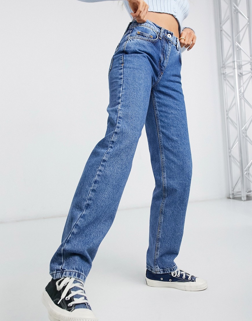 Niebieskie luźne jeansy typu dad w stylu lat 90 o średnim stanie W34 L32