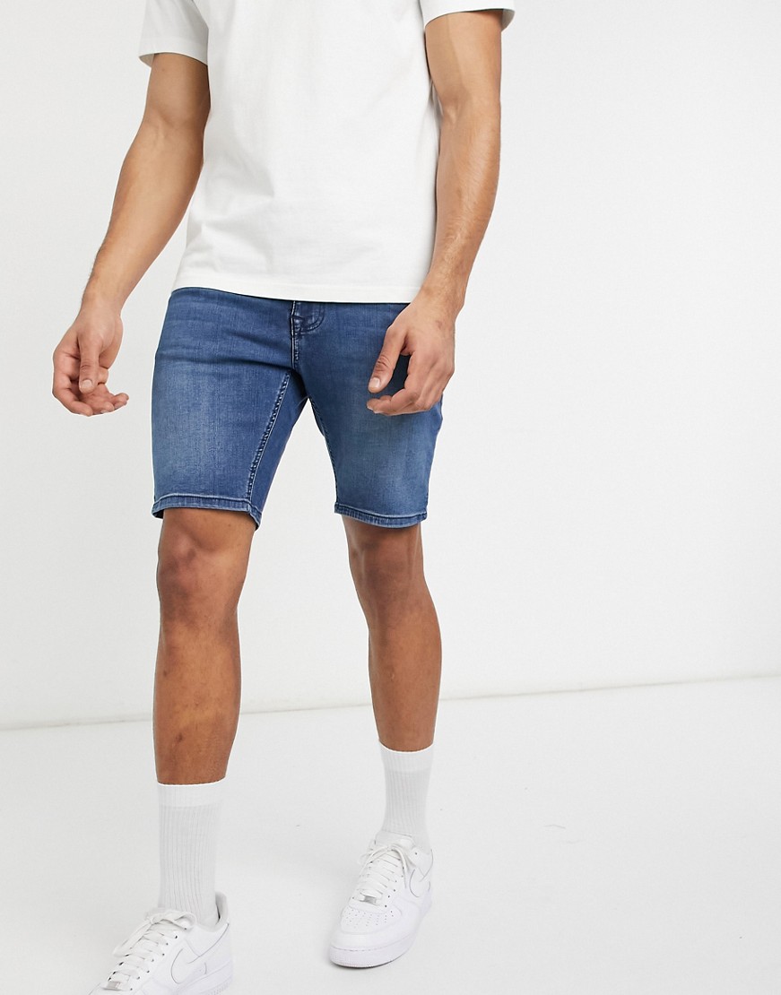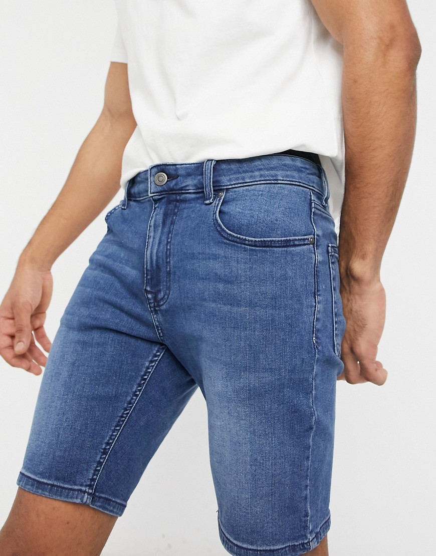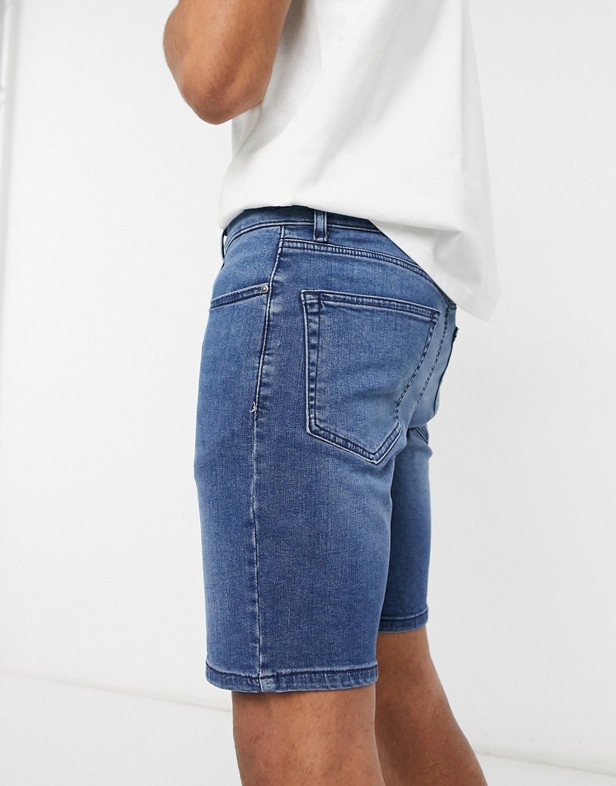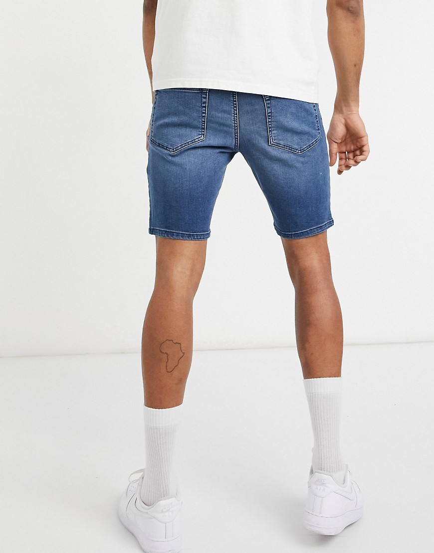Niebieskie męskie szorty jeansowe ze stretchem dopasowane skinny W32