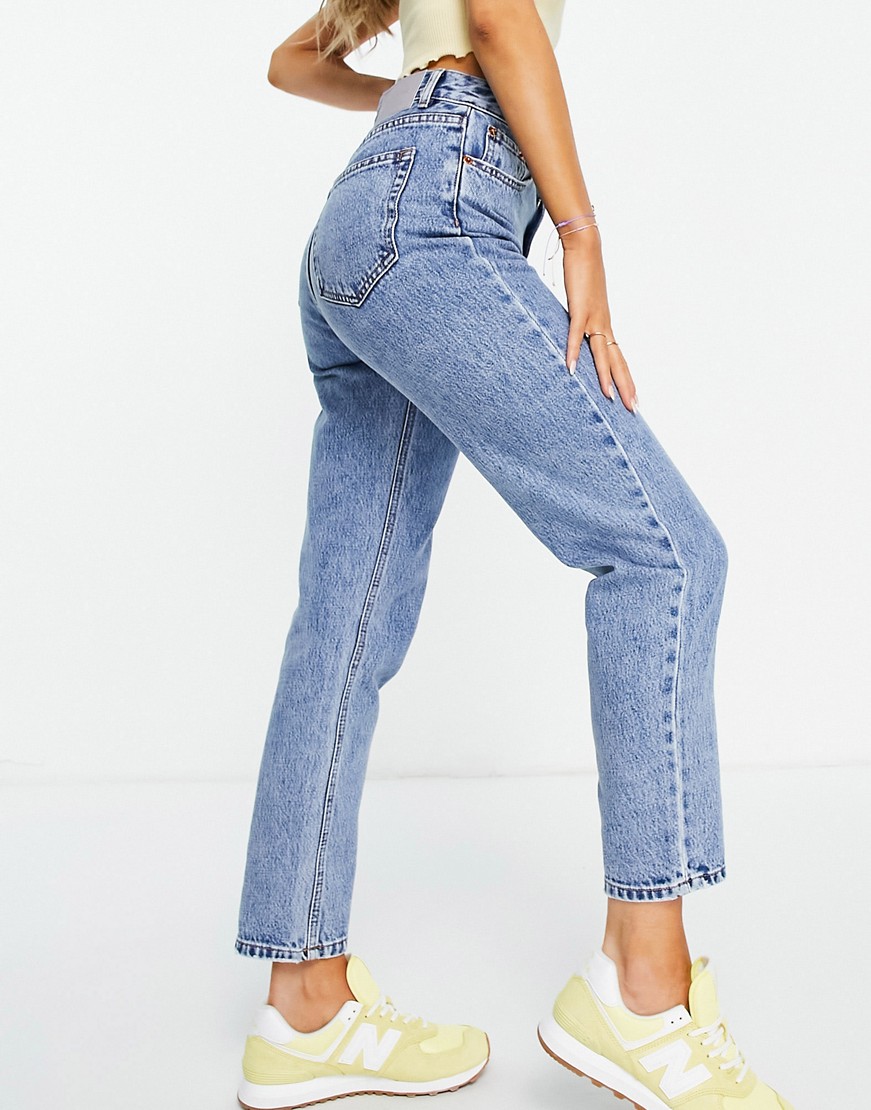 • Standardowy krój na wysokości ud, wąska dolna część nogawki