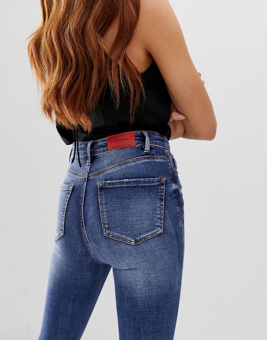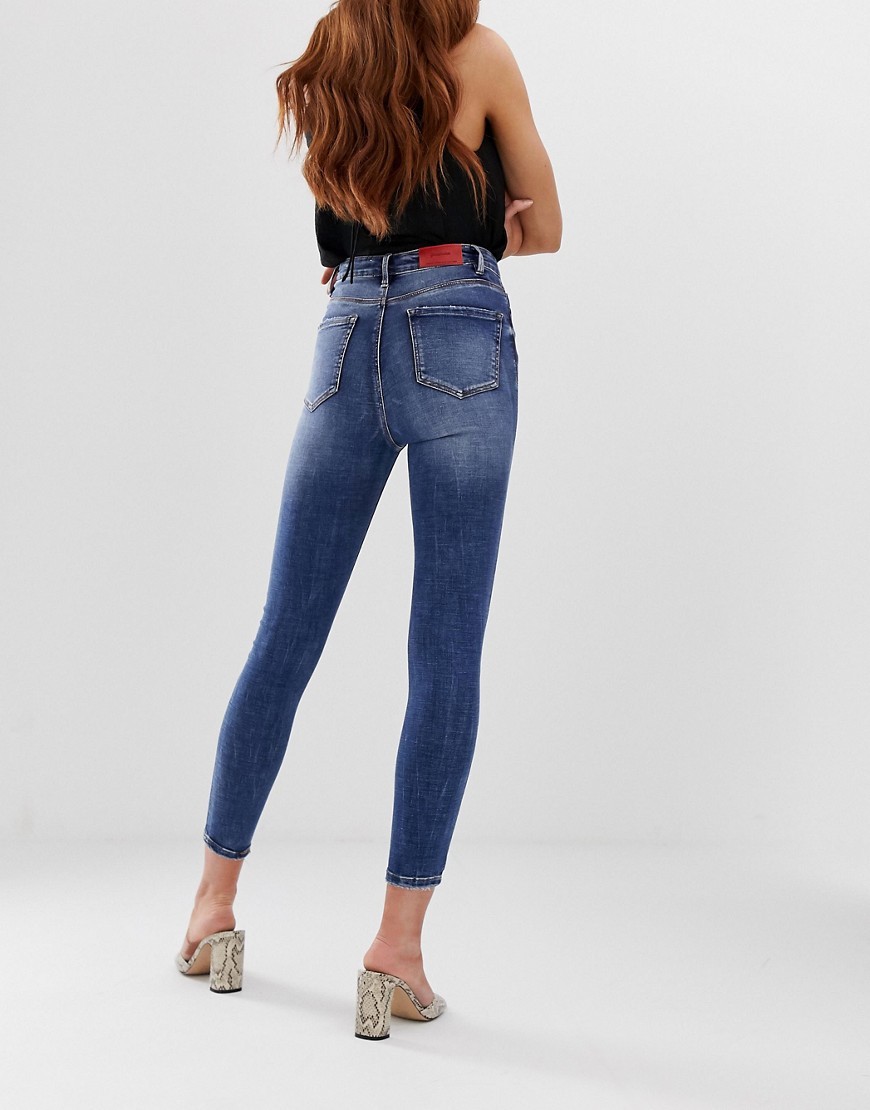 Niebieskie spodnie jeansowe wysoki stan dopasowane XL 42