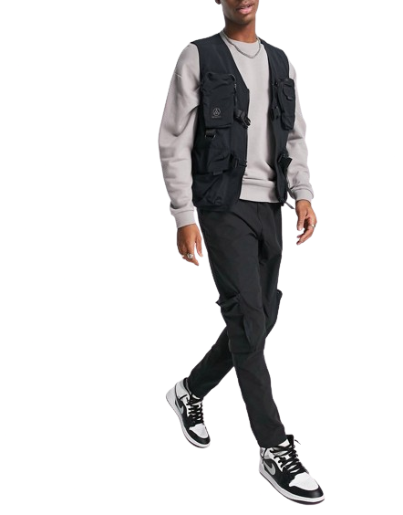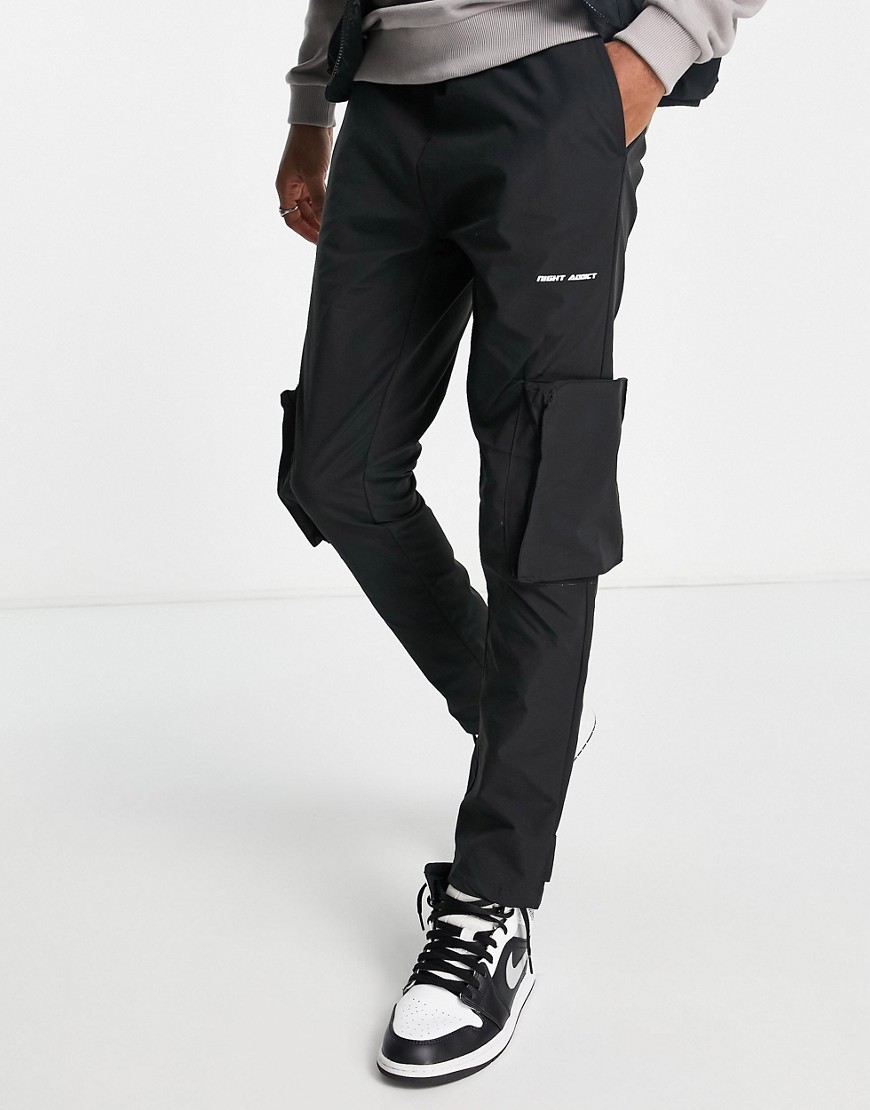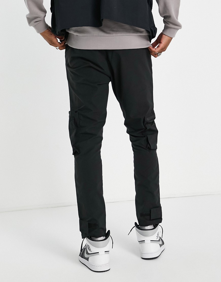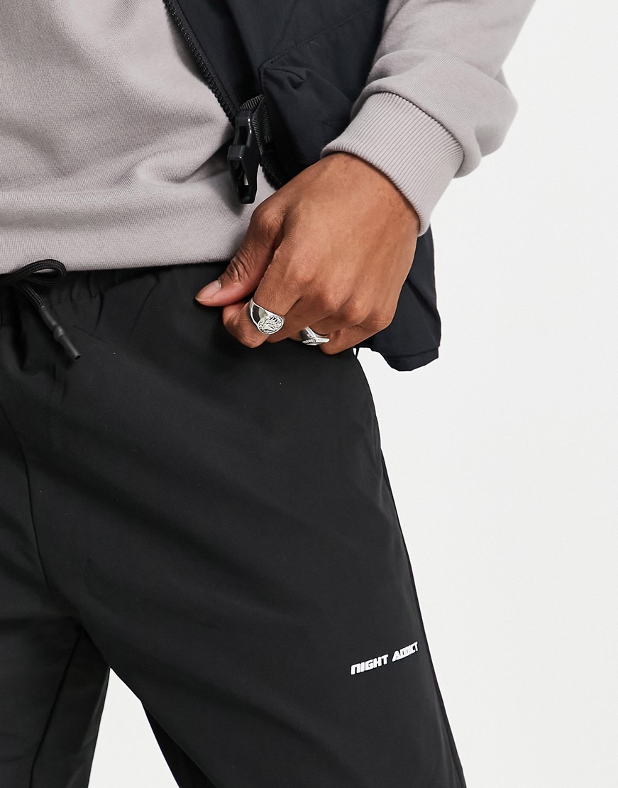 Night Addict Czarne spodnie w stylu roboczym ze zwężanymi nogawkami i ściągaczami W30