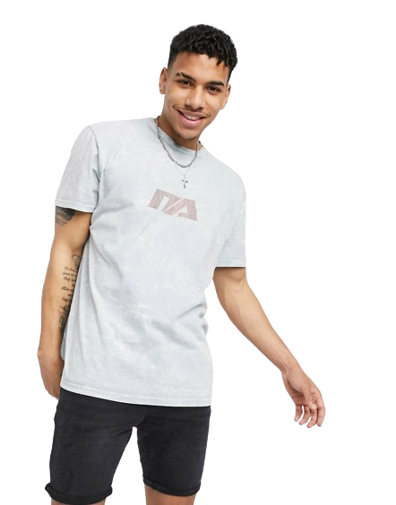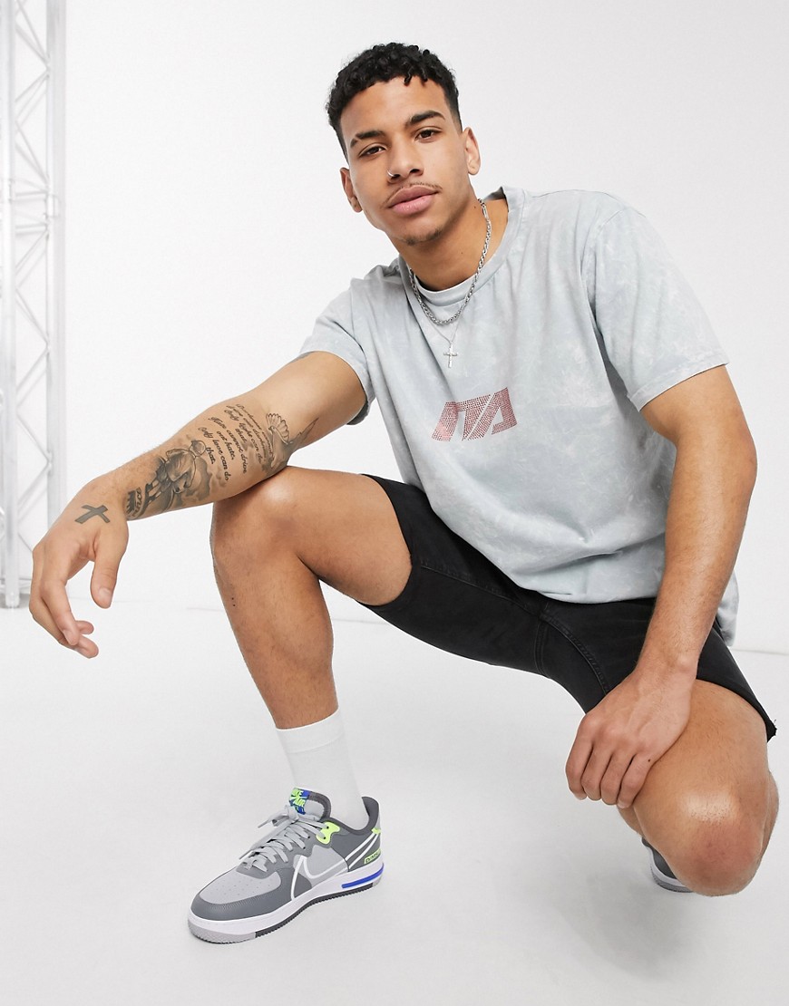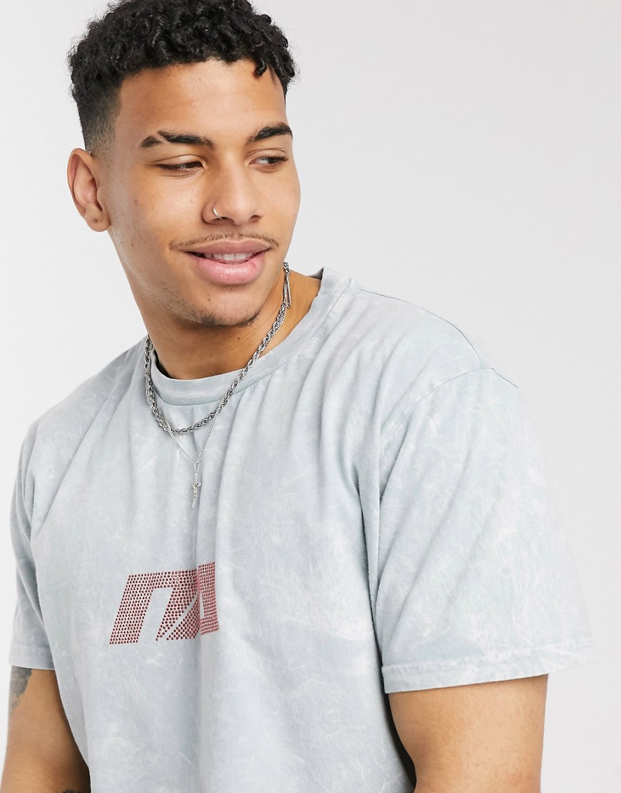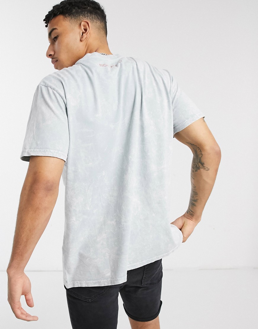 Night Addict męski szary t-shirt oversize z logo z cyrkoniami M