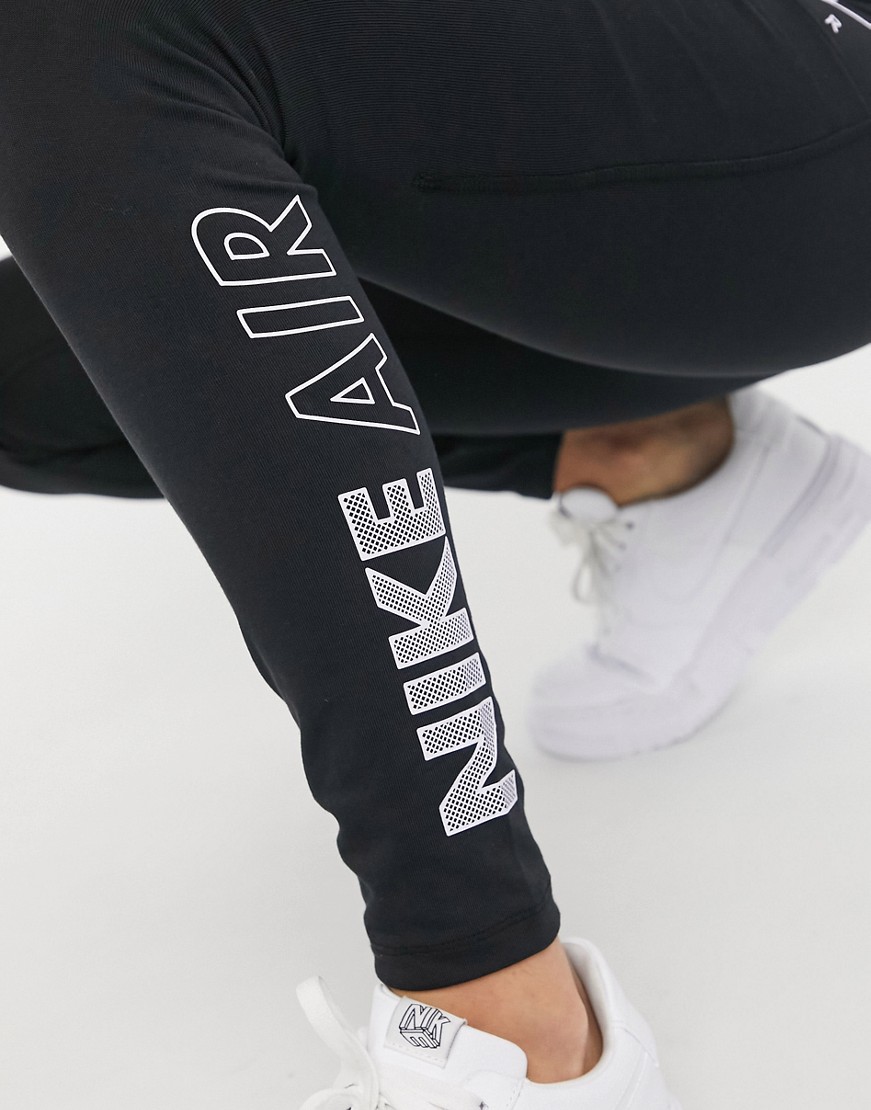 Nike – Air – Czarne legginsy z podwyższonym stanem i logo na łydce M
