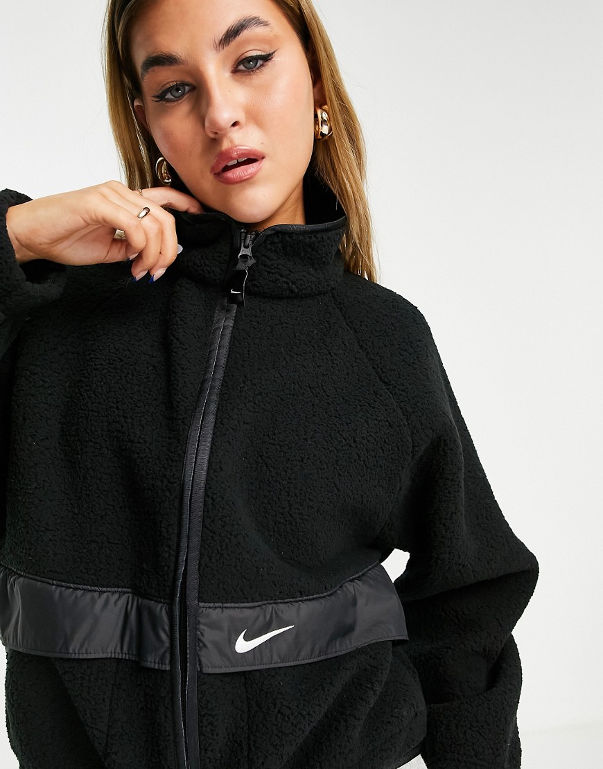 Nike czarna kurtka ze sztucznego kożuszka z małym logo Swoosh M