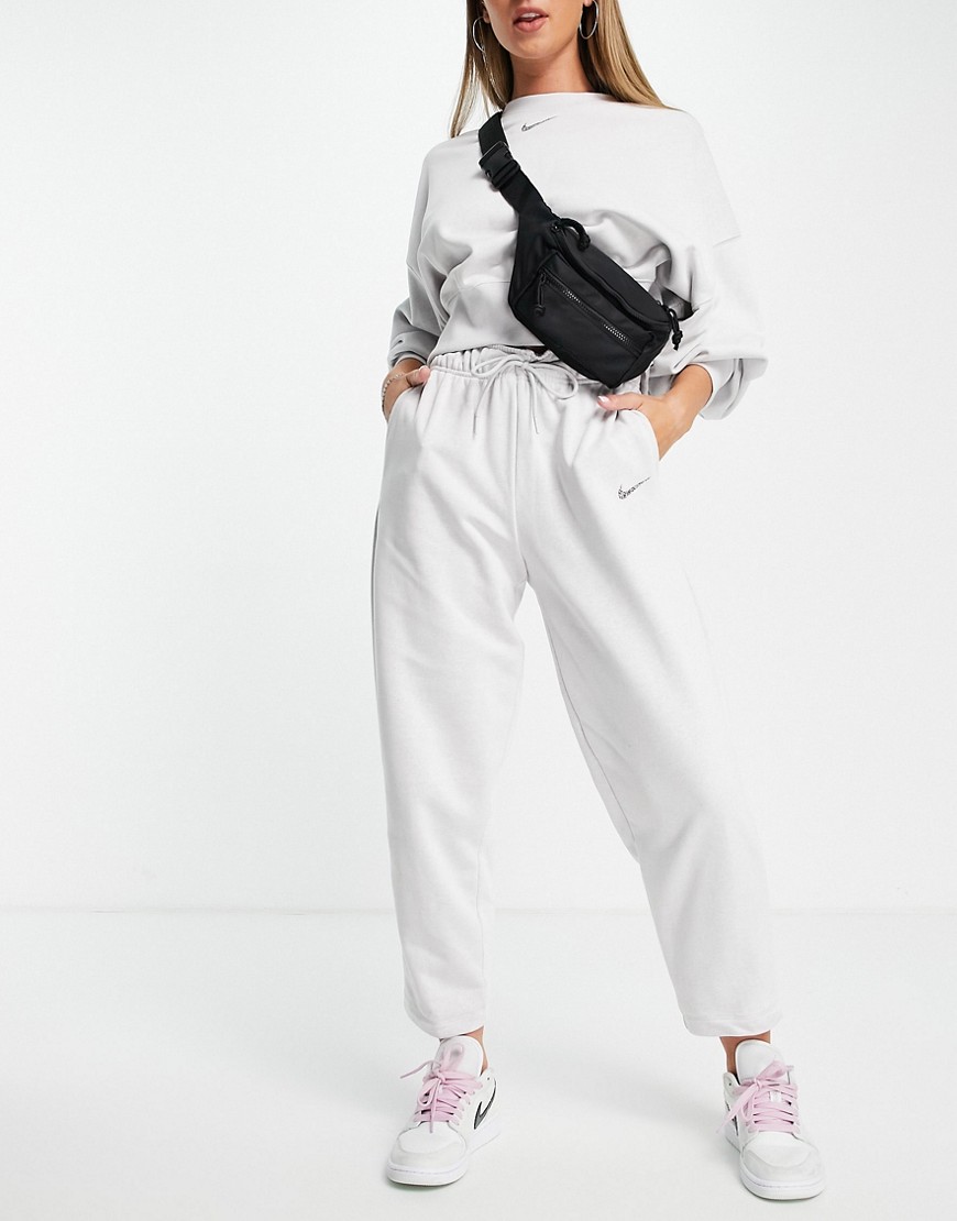Nike Lounge szare damskie melanżowe spodnie dresowe logo szerokie nogawki L