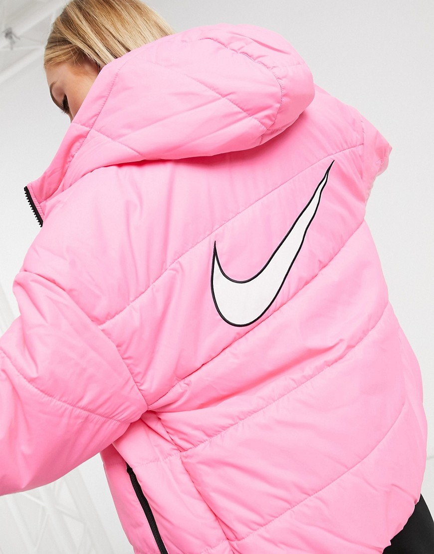 Nike – Różowa kurtka ocieplana z logo Swoosh na plecach L