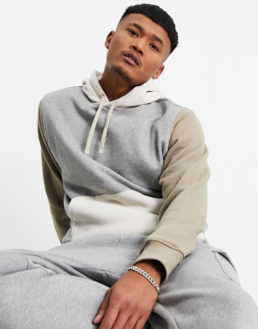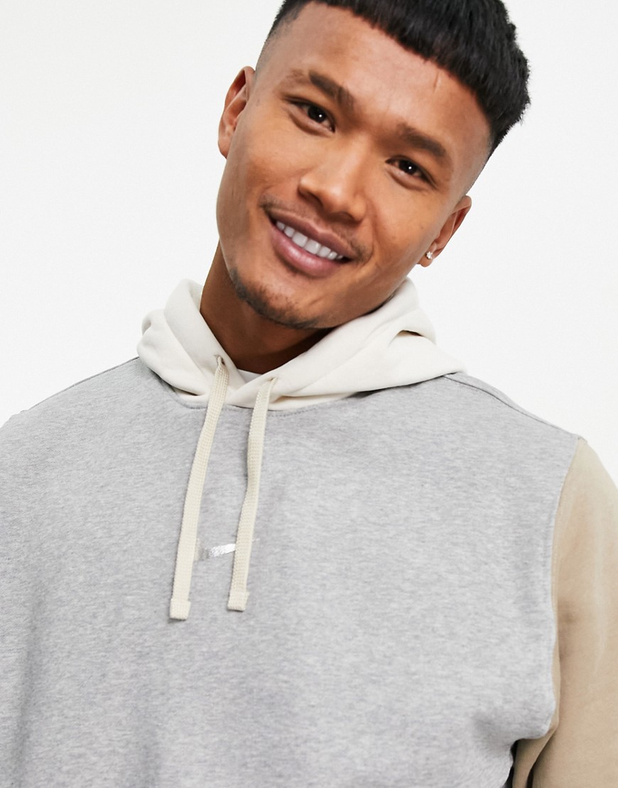 Nike szara bluza dresowa z kapturem z blokami kolorów S