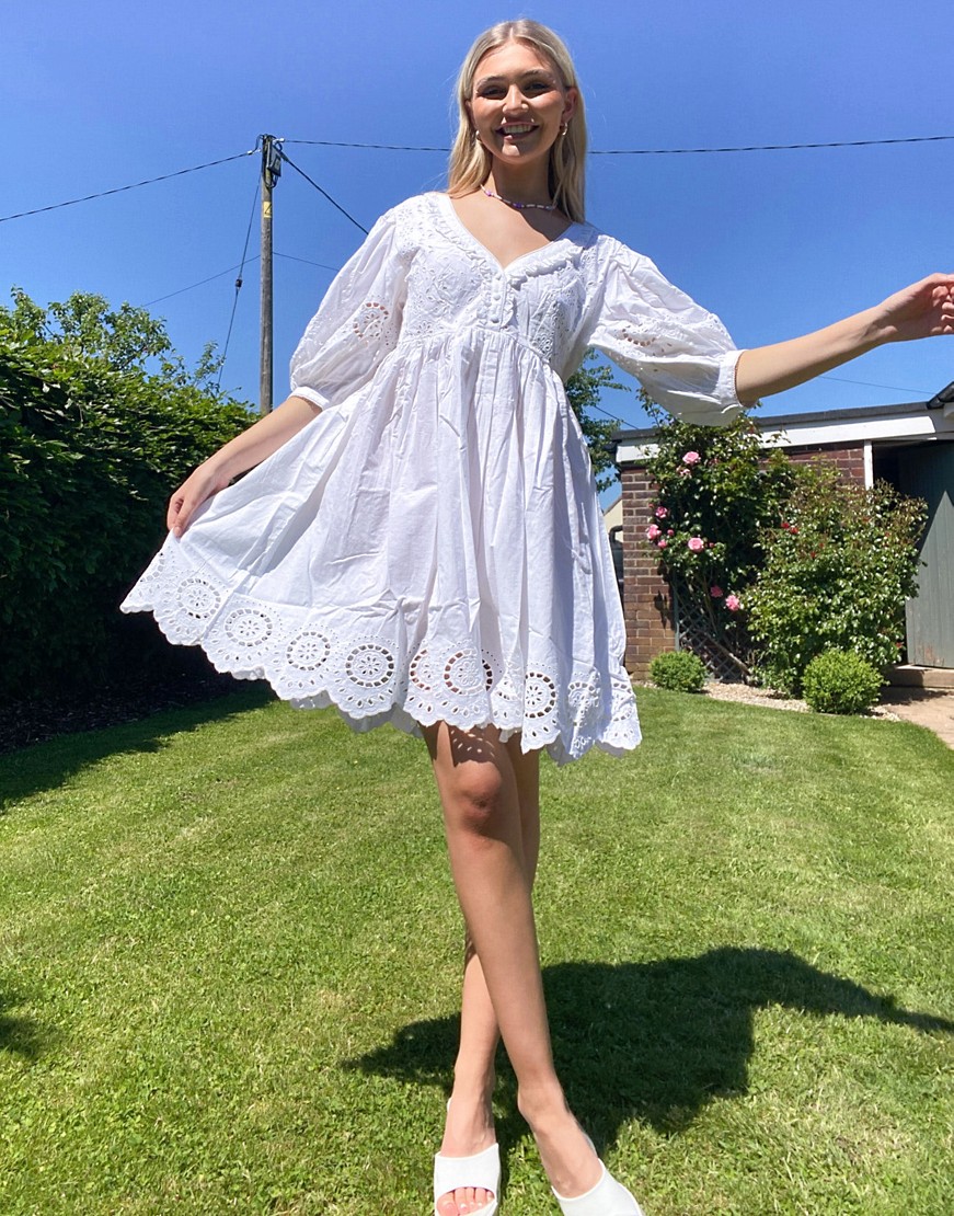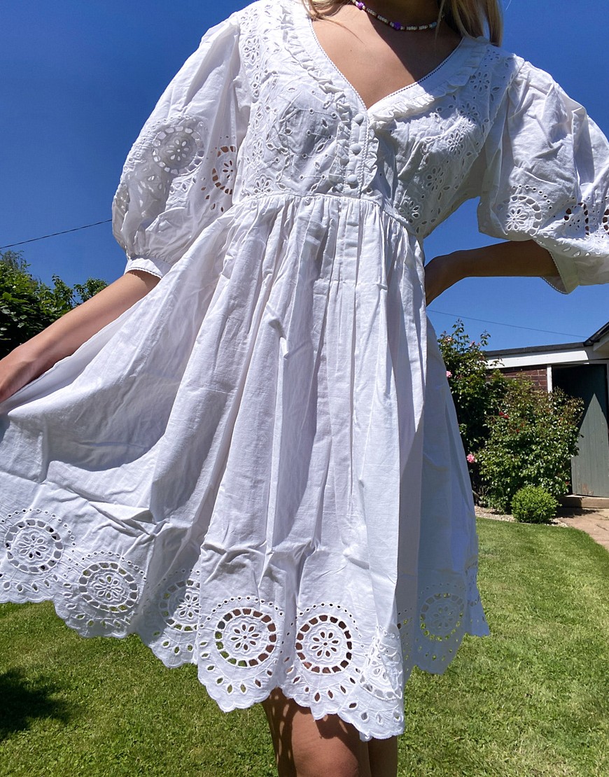 - Lekki materiał z haftowanym wzorem z wycięciami