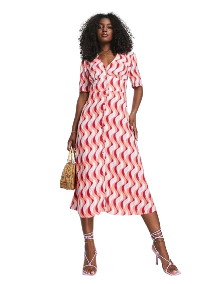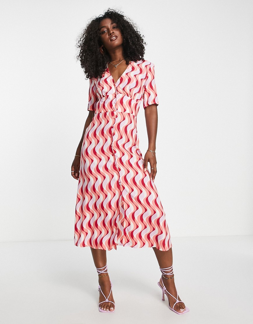 Nobody’s Child sukienka midi z falistym wzorem krótki rękaw 40