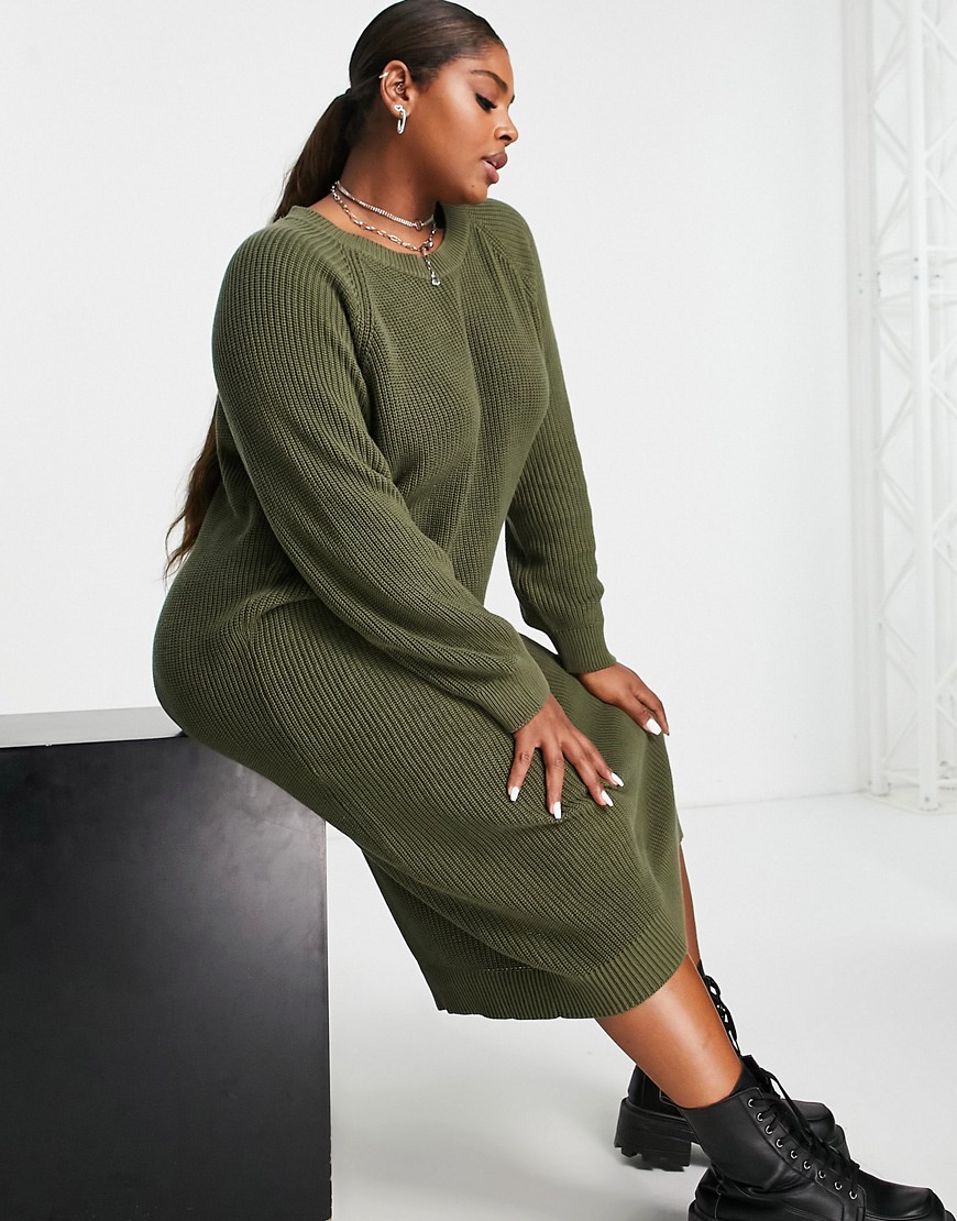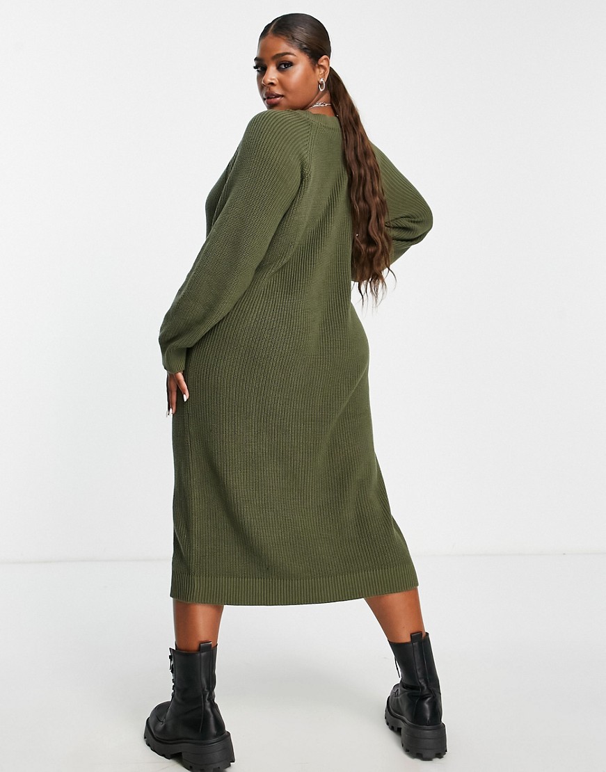Noisy May Curve dzianinowa sukienka midi z rozcięciem w kolorze khaki 46