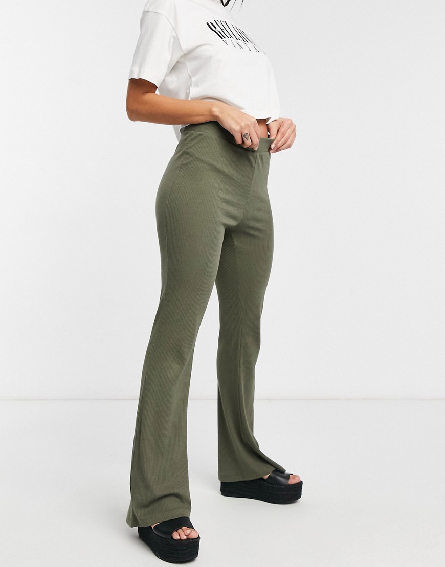 Noisy May prążkowane dzwony w kolorze khaki defekt XS