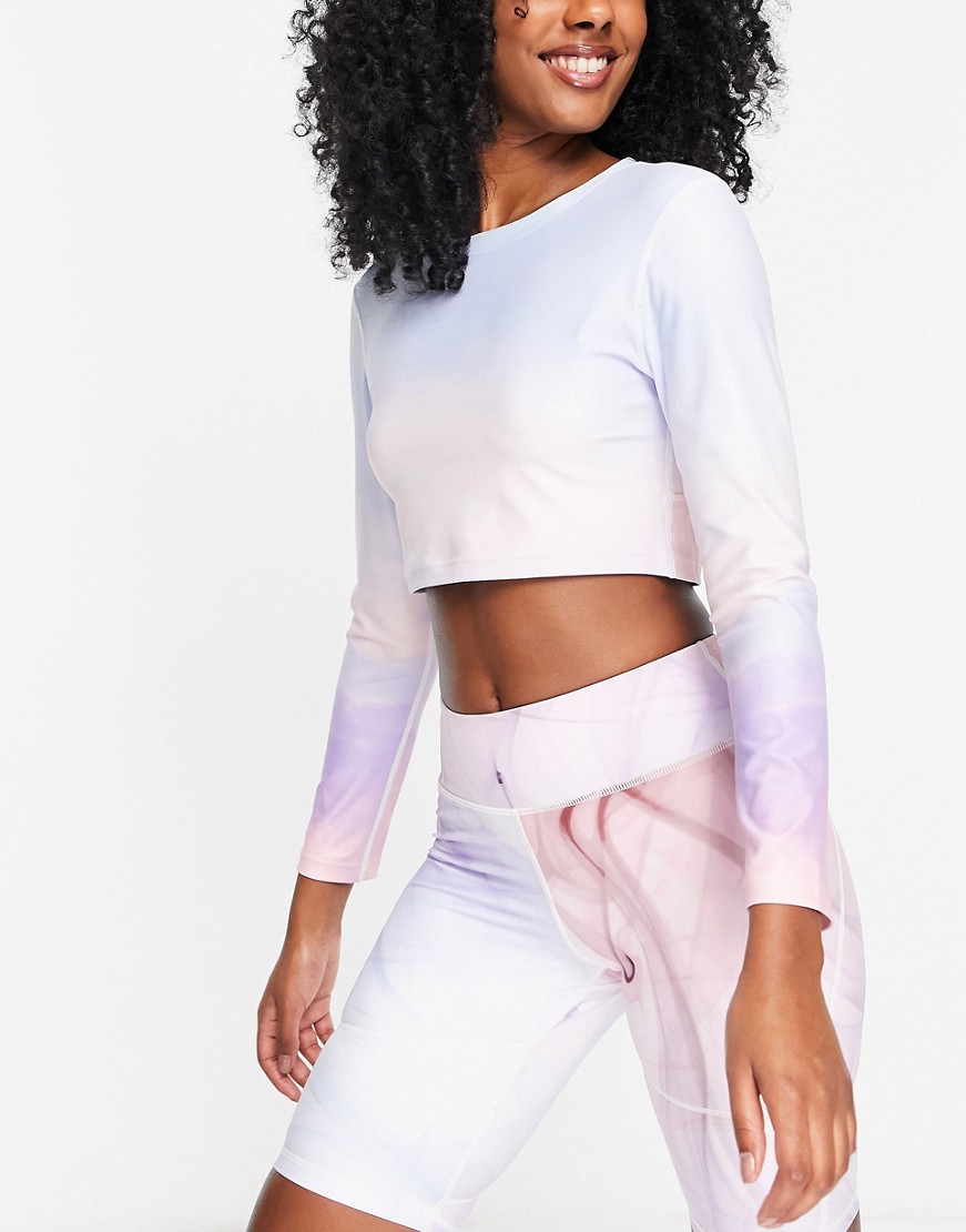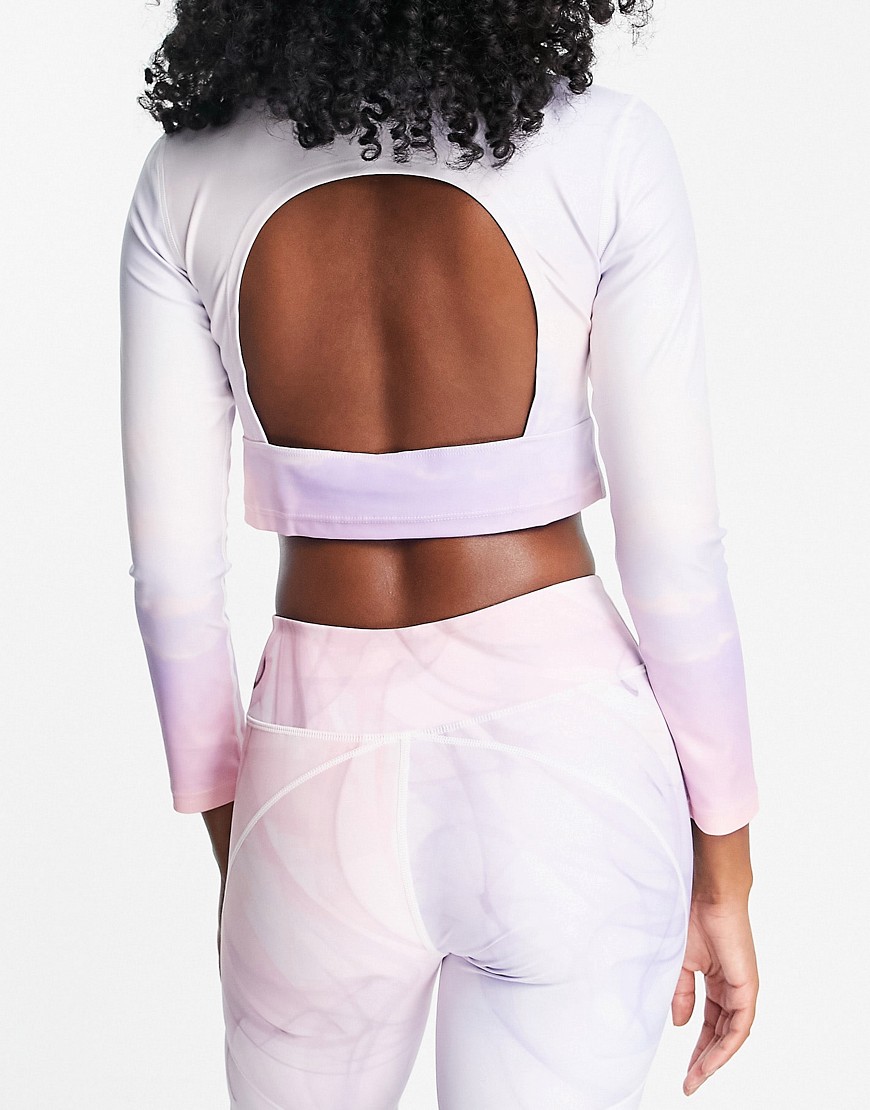 Nubyen Ibiza top bez pleców z długim rękawem w niebiesko-różowy wzór S