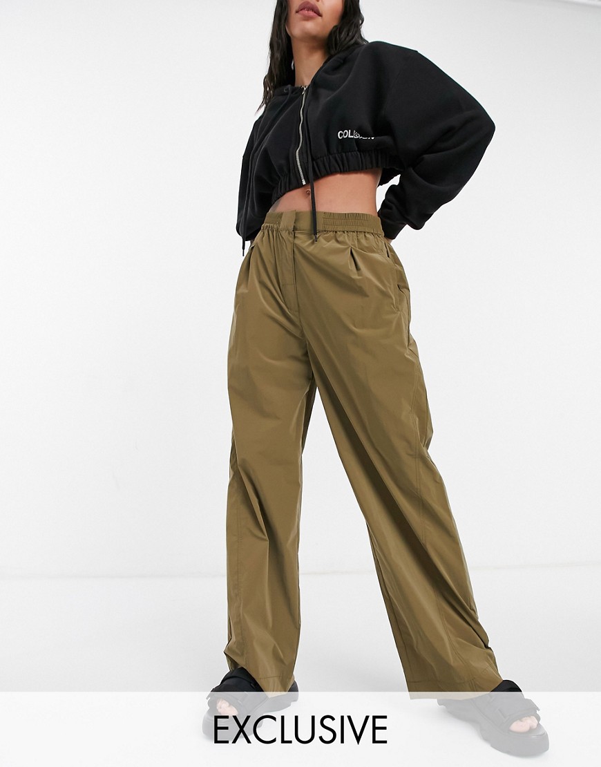 Nylonowe spodnie o luźnym kroju khaki 38 L30