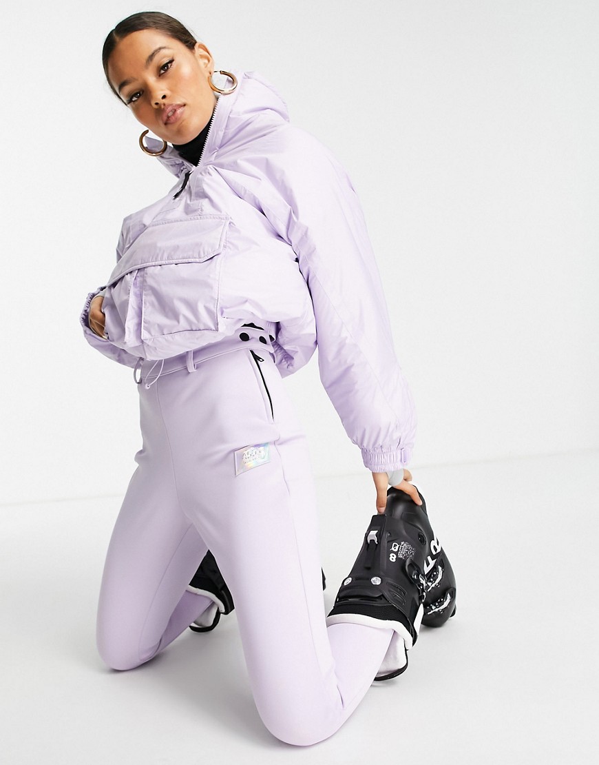 Obcisłe spodnie narciarskie ze strzemionami fioletowe defekt 34