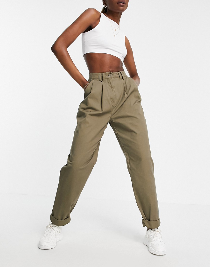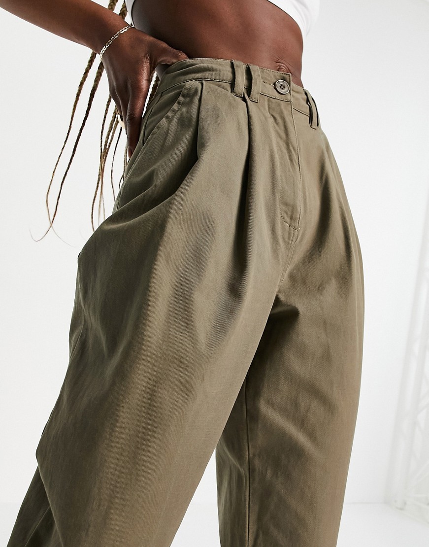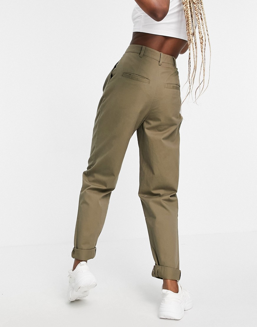 Oliwkowe spodnie ze zwężanymi nogawkami i podwijanymi mankietami 38