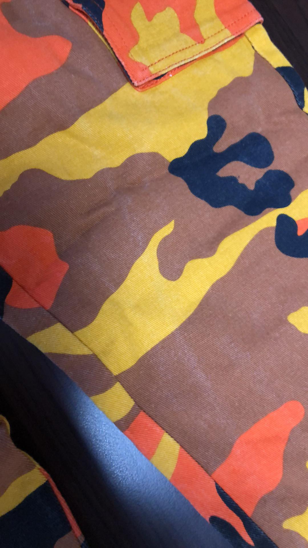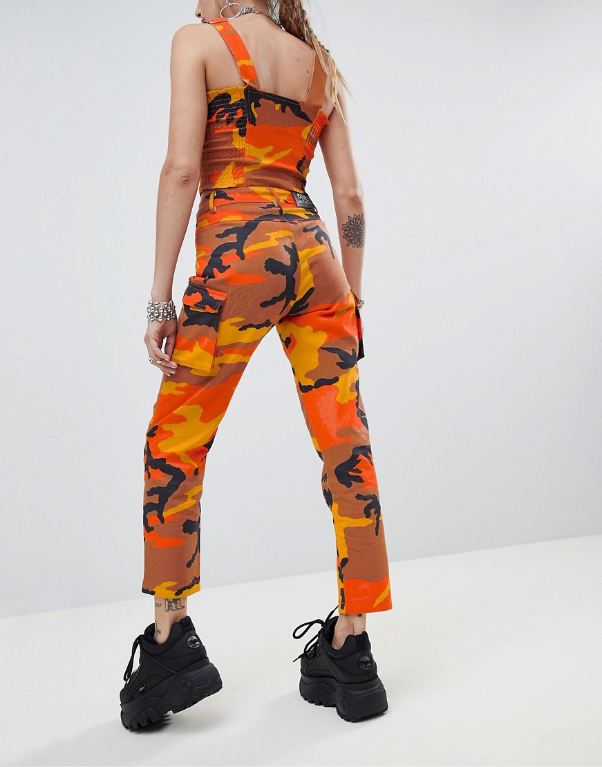 One Above Another pomarańczowe spodnie moro wysoki stan defekt 36