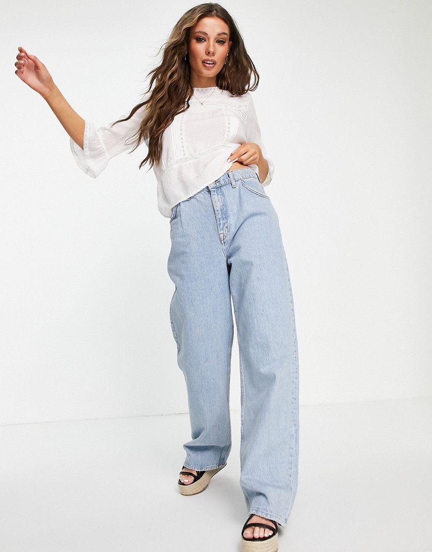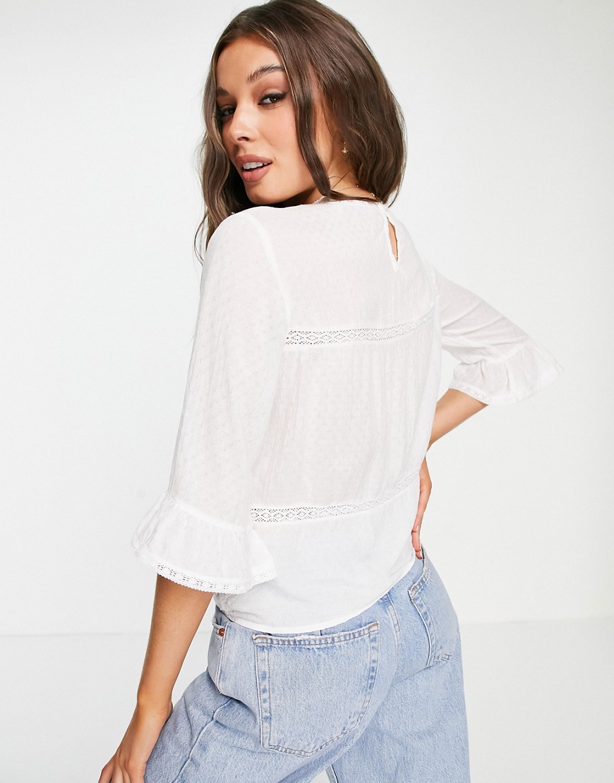 Only biała bluzka z koronkowymi wstawkami z rozkloszowanymi rękawami 36