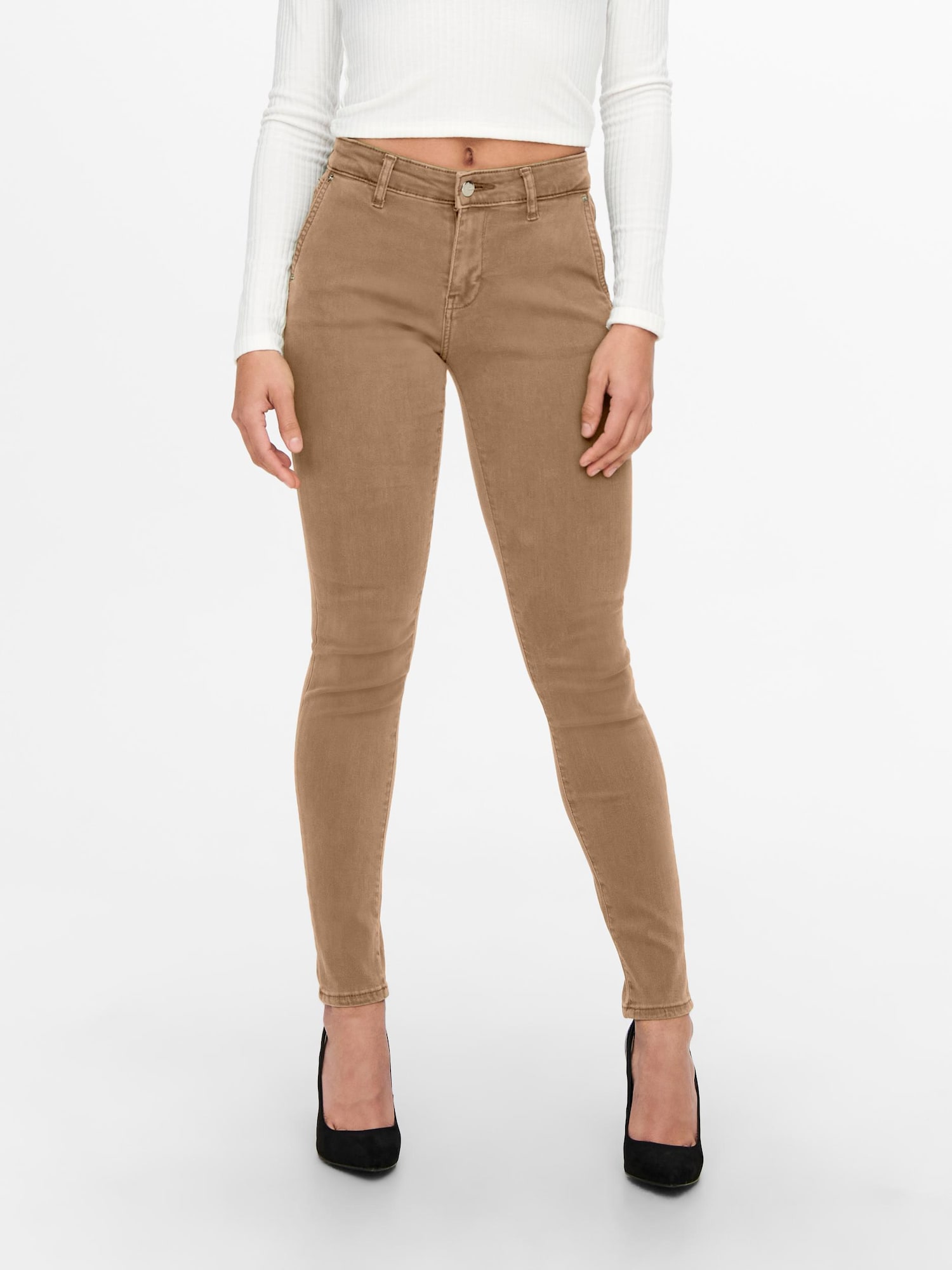 Only brązowe spodnie rurki L
