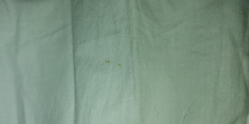 • Defekt: drobna plamka na lewym łokciu (zdjęcie)