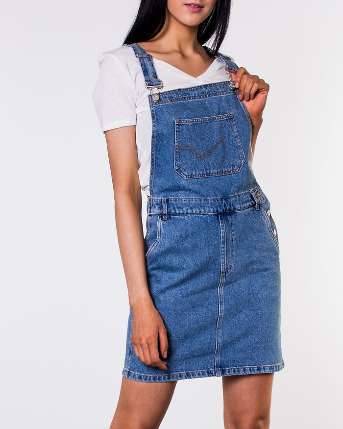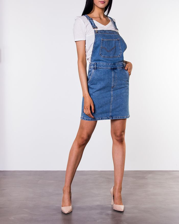 Only niebieska sukienka mini ogrodniczka na regulowanych ramiączkach 36