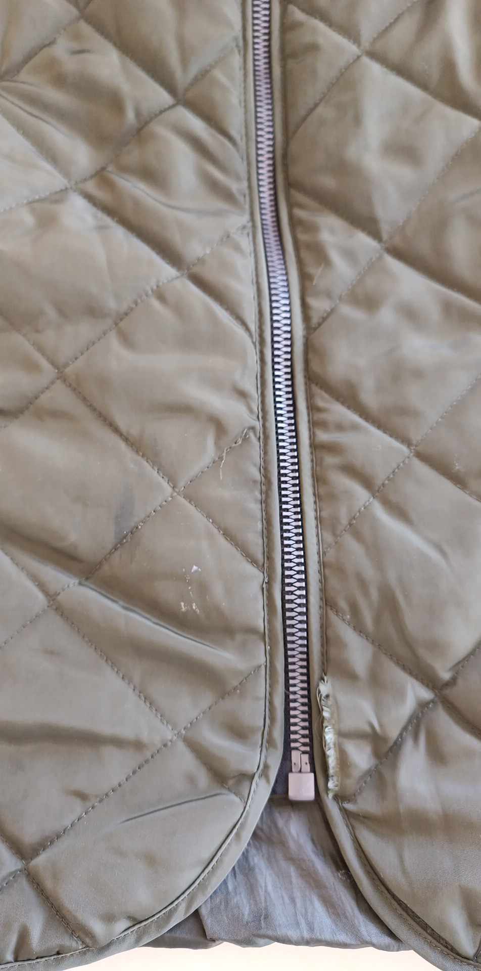 - defekt ślady użytkowania, zmechacone mankiety, zabrudzenia, rozprucie przy zamku, wyczuwalny zapach