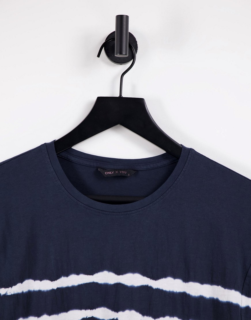 Only Sally T-shirt farbowany w stylu tie-dye ganatowy defekt S