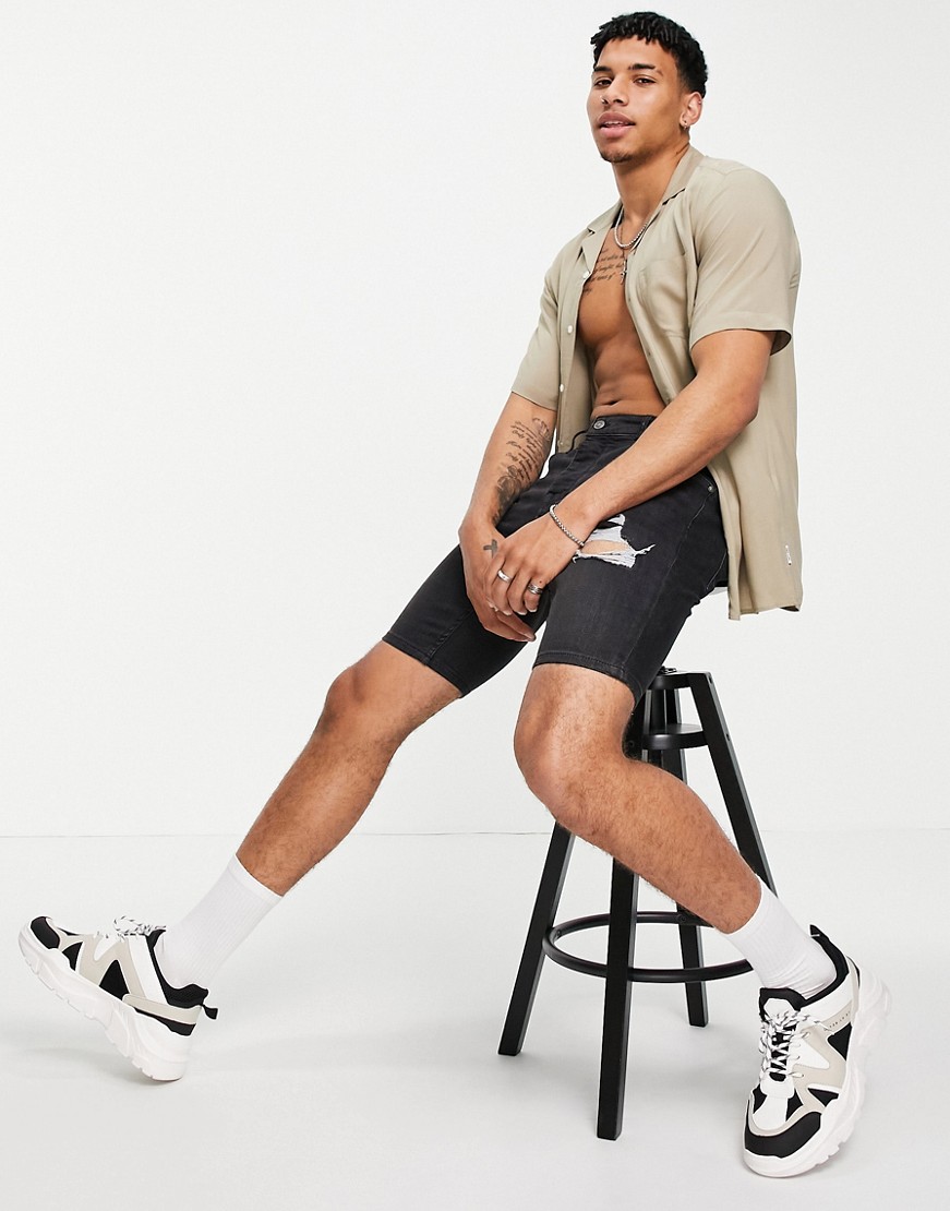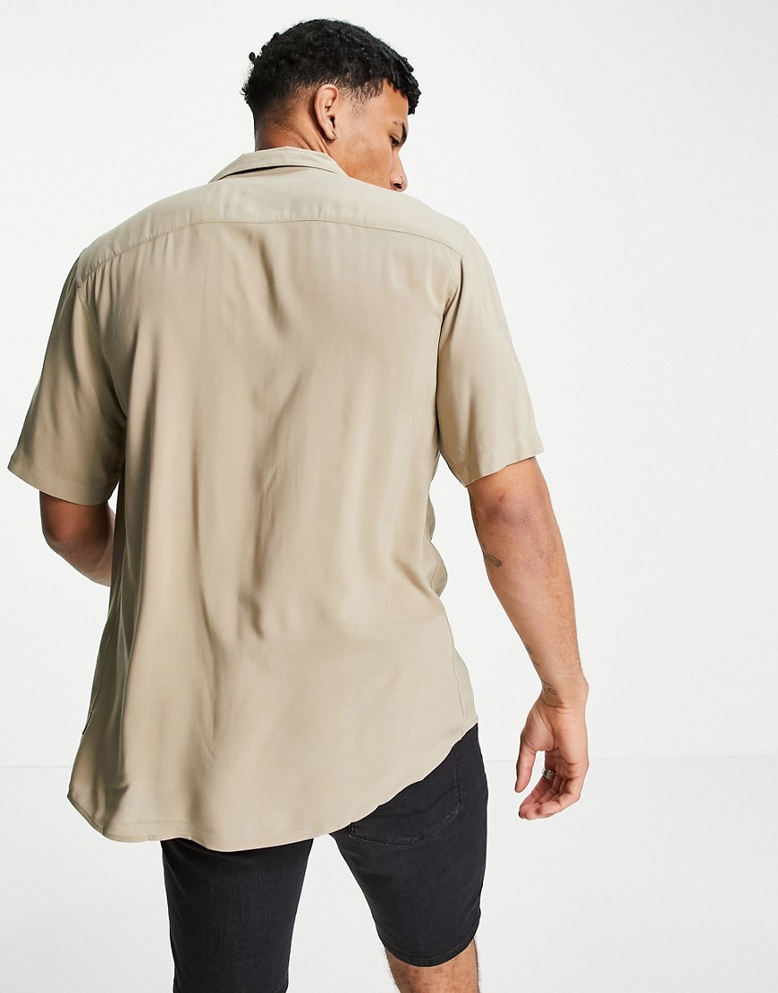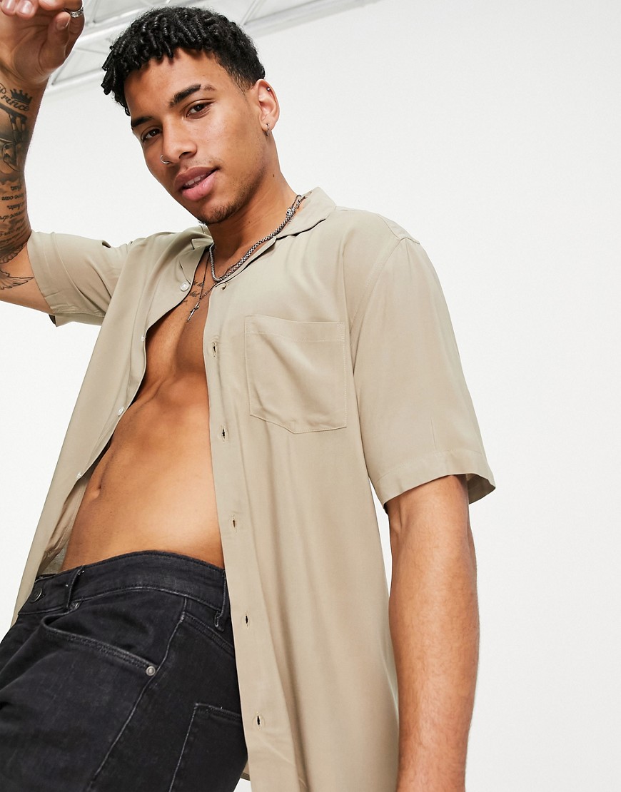 Only & Sons beżowa koszula męska z wiskozy z kołnierzykiem kubańskim defekt M