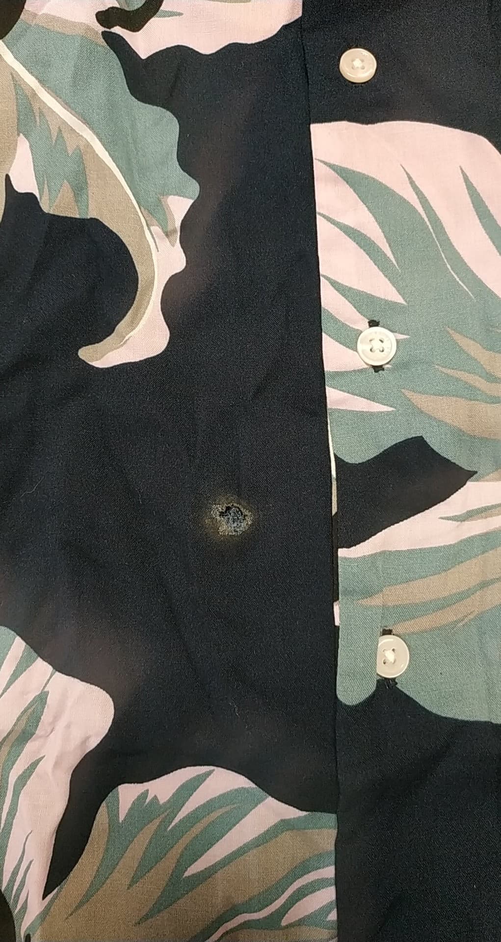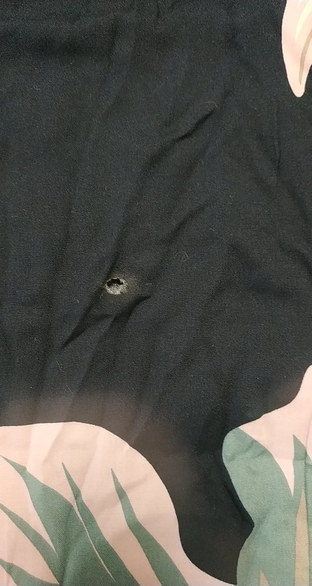 • defekt wypalona dziura w materiale z przodu i z tyłu