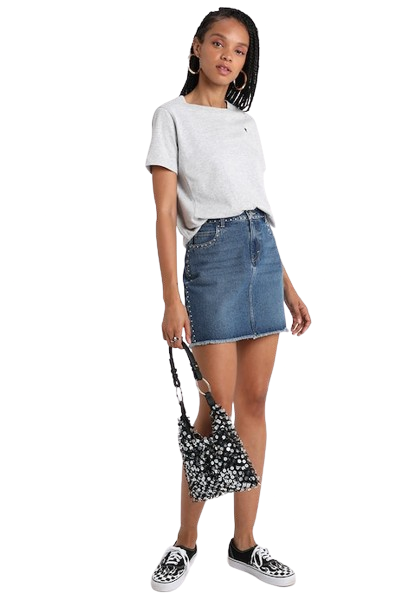 Only spódnica jeansowa mini postrzępiona nabite ćwieki defekt S