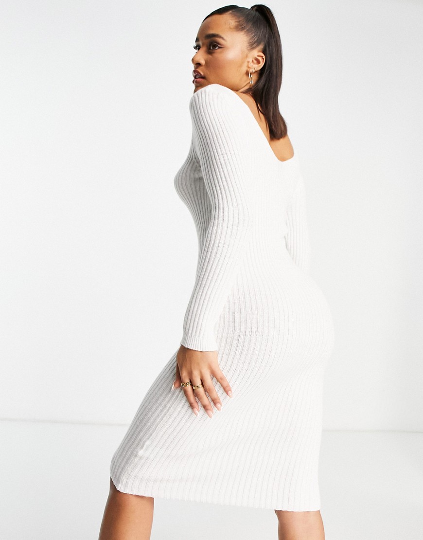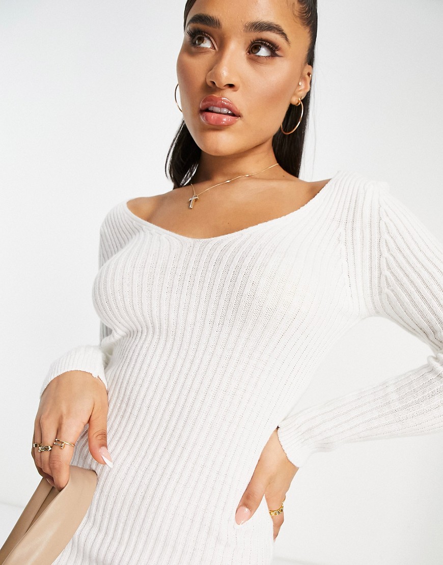 Parisian biała dzianinowa sukienka mini dekolt V 36