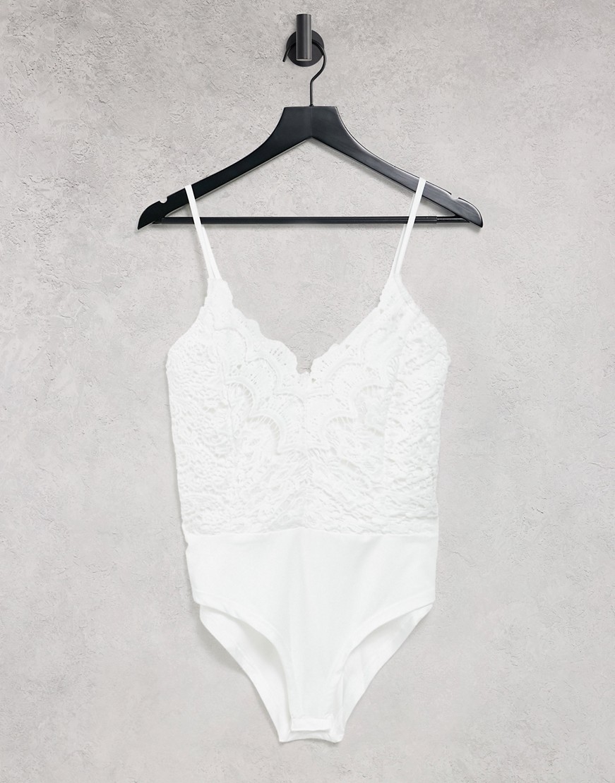 Parisian białe koronkowe body z dekoltem V na ramiączkach 36