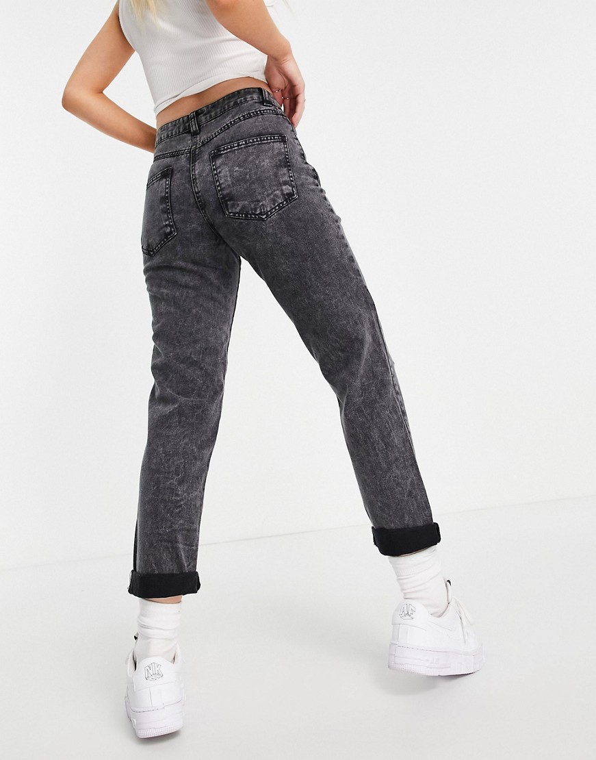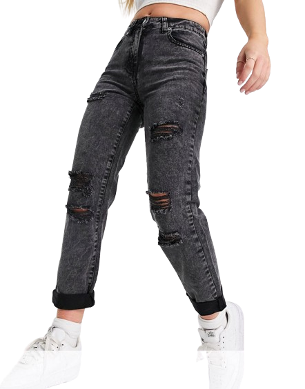 Parisian Petite czarne mom jeans z przetarciami efekt sprania 42