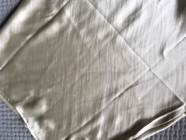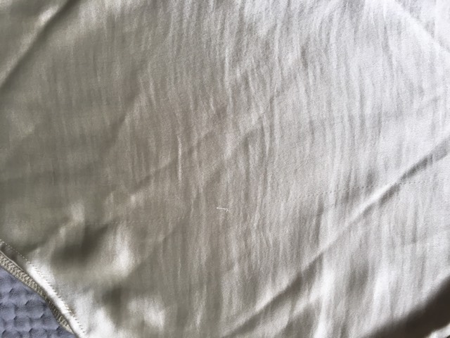 - Defekt: zaciagnięcie materiału z tyłu spódnicy po skosie oraz na przodzie po prawej stronie, mało widoczne w tego typu tkanienie (zdjęcie).