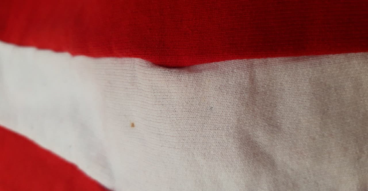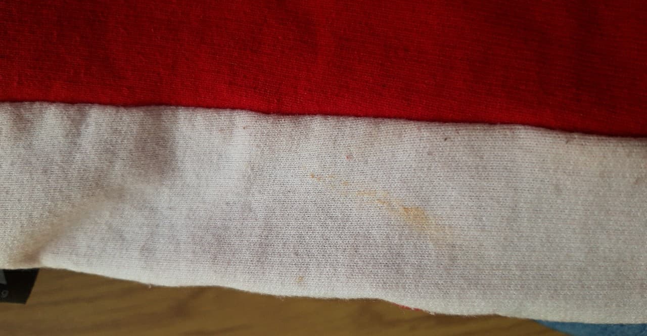 • Defekt: używane, zabrudzenia, zabarwione na czerwono białe lampasy (zdjęcie)